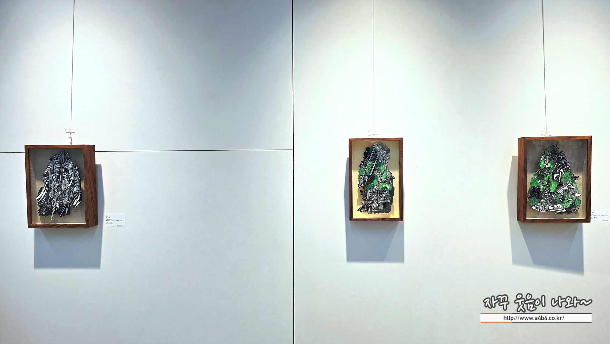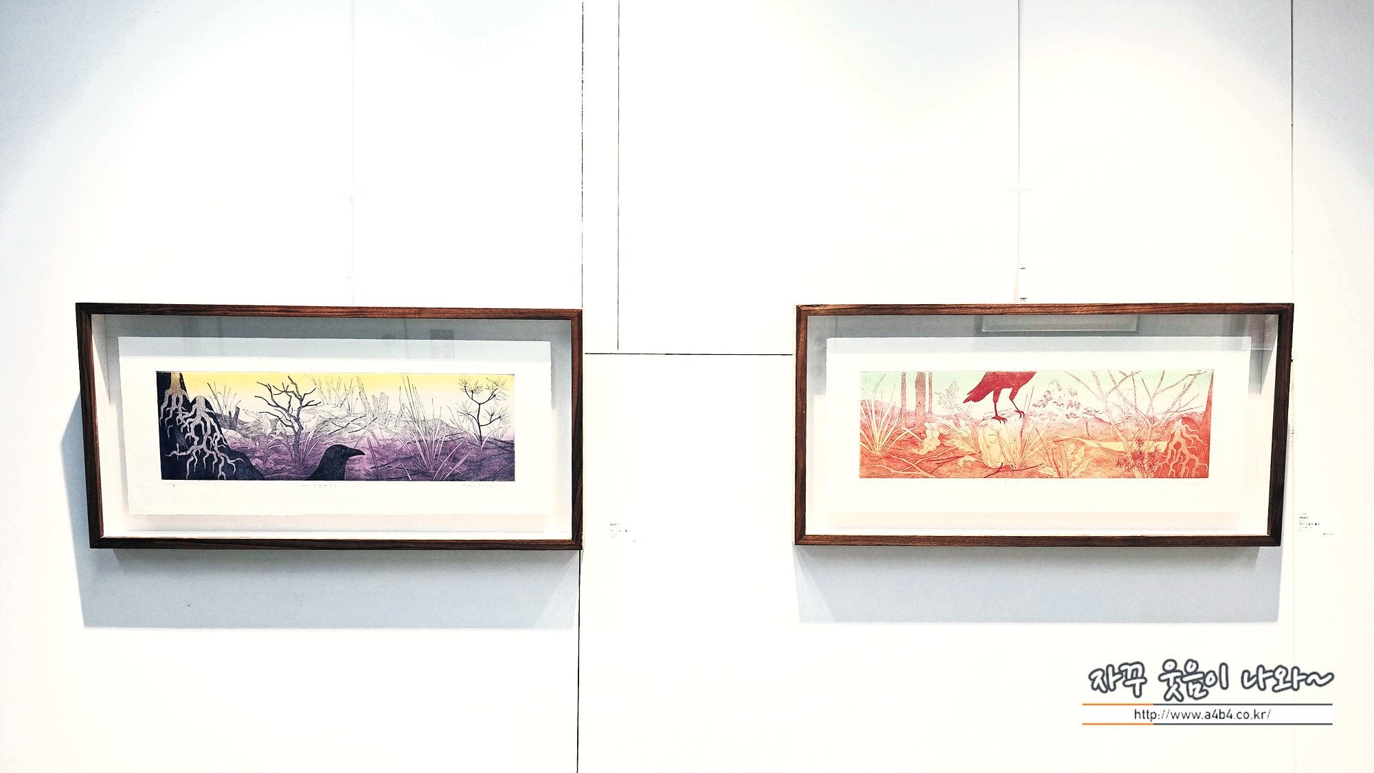 BGN 갤러리는 50미터 정도 긴 복도를 전시장으로 활용한 독특한 구조로 무인 갤러리로 운영되고 있는데요. 이번 전시회는 강민경 김동기 두 명의 판화작가 작품 약 30여점 전시되어 있습니다.