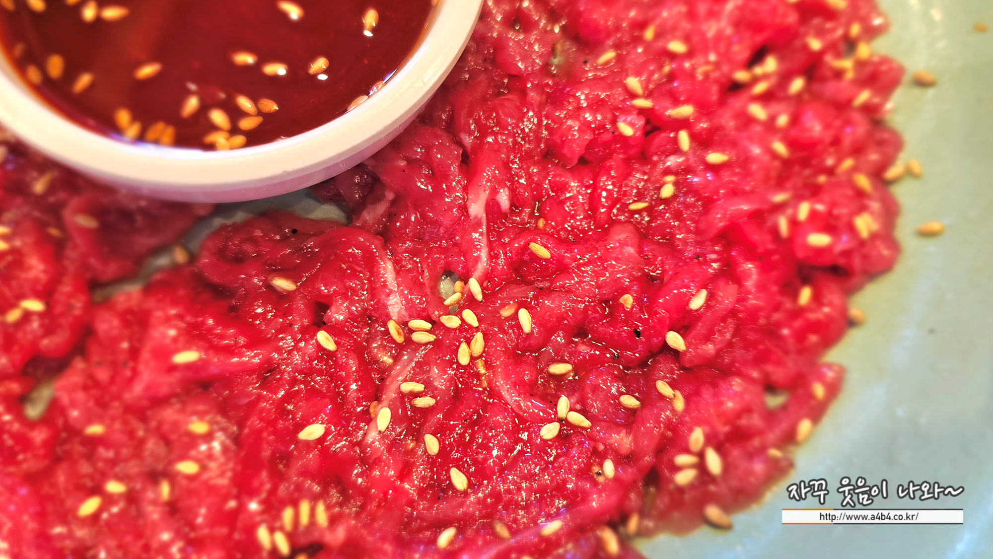 부드럽고 달콤 고소한 육회로 1,000원 추가하면 부추와 함께 육회비빔밥 만들기 가능합니다.