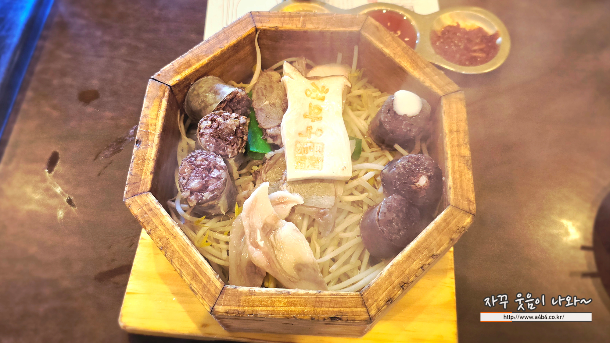 순대국밥에 5,000원 추가하면 사진속 맛보기 편백을 추가할 수 있습니다.