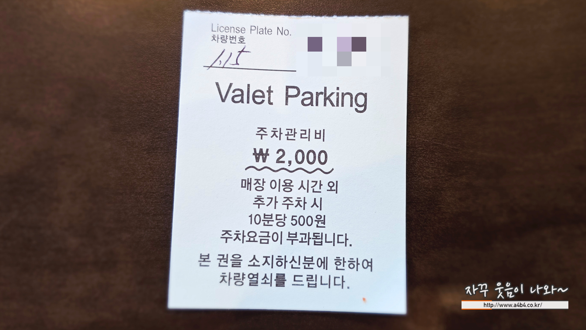 발렛비용은 2,000원이며, 식사후 청와옥에서 해당 주차권에 도장받아 오시면 청와옥 본점 주차요금 없이 발렛비용만 지급하시면 됩니다.