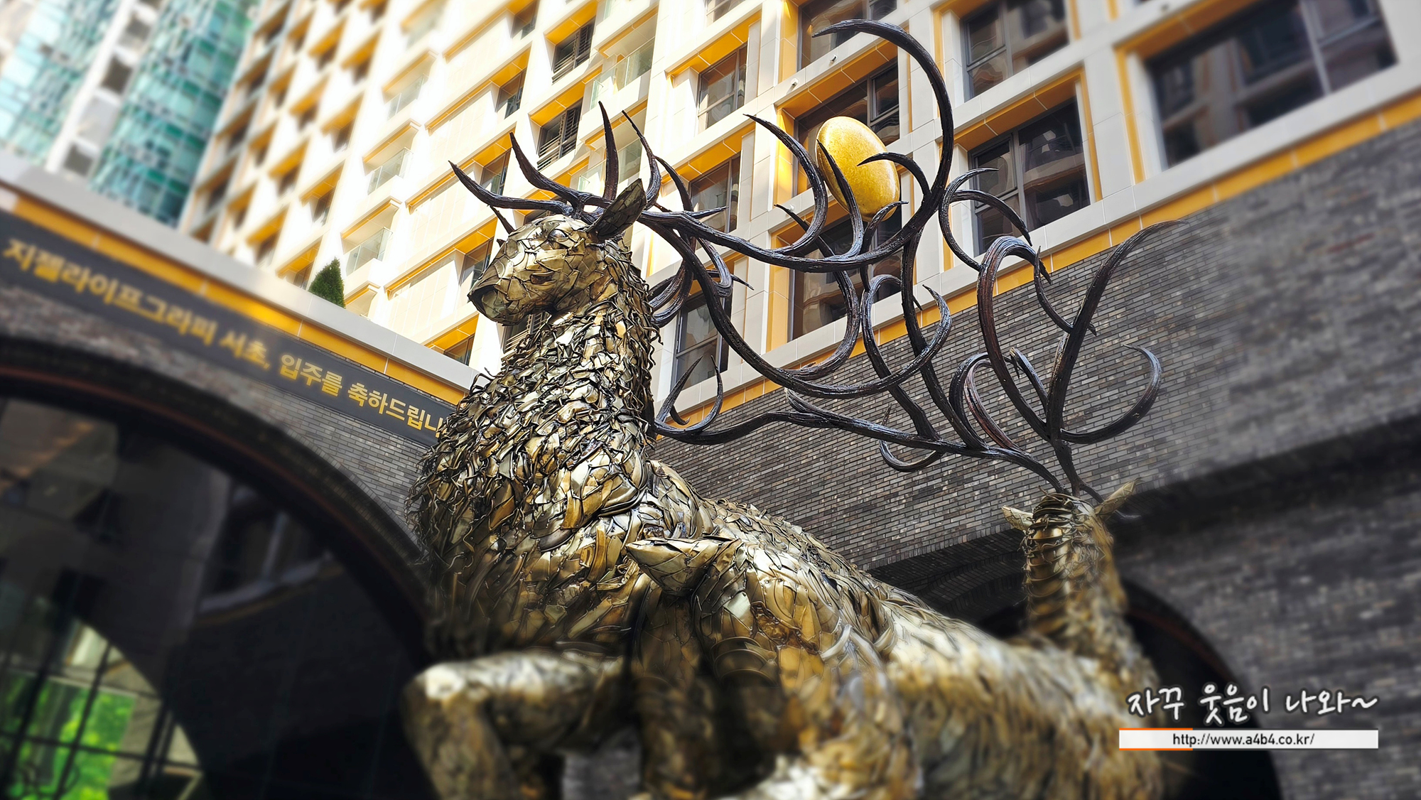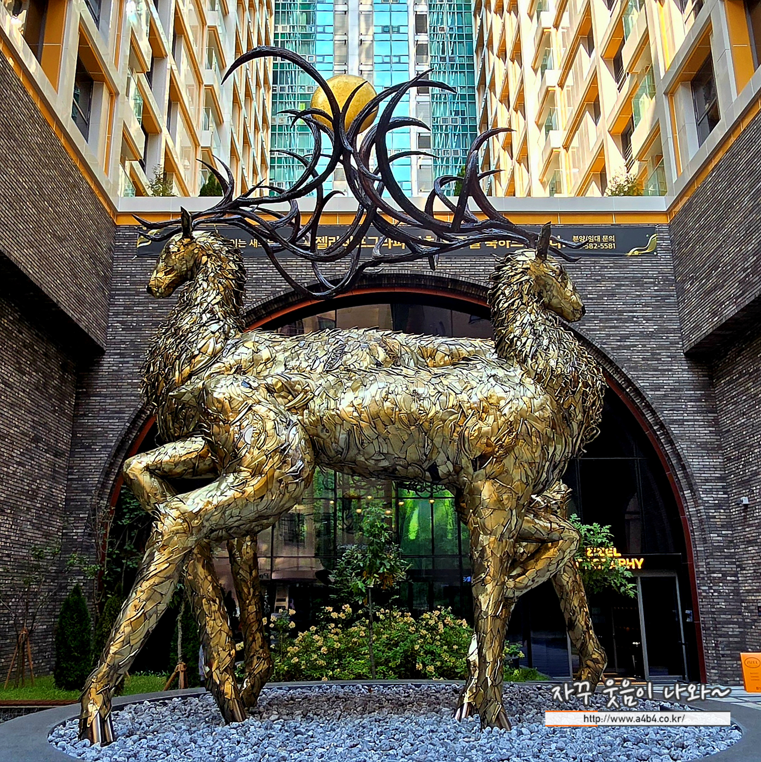 한 쌍의 거대한 사슴 조형물을 만나볼 수 있는데요.
