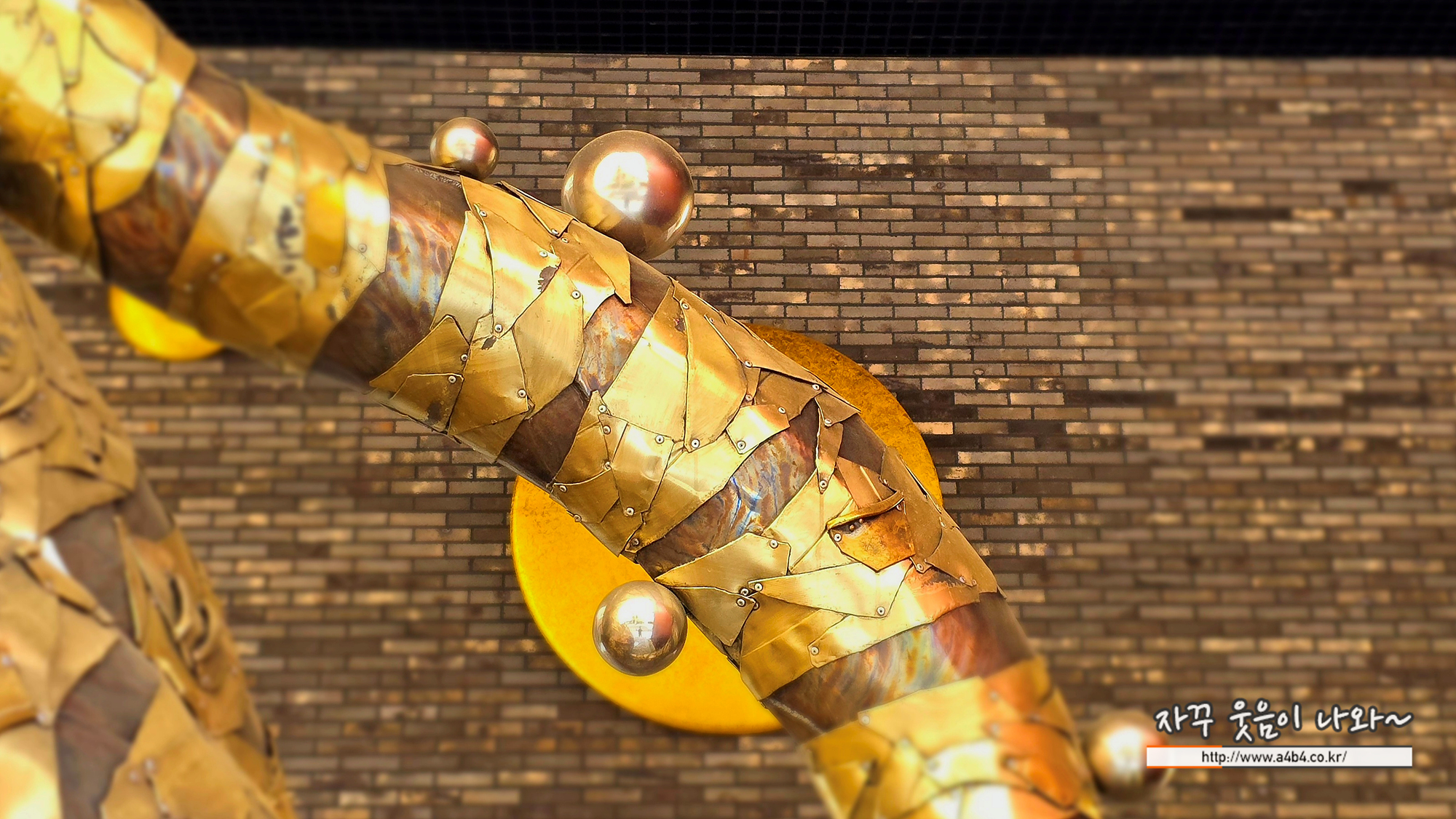 작품재료 : 양은냄비, 스테인리스 스틸, 철, 리벳, 금, 화강석, LED 조명