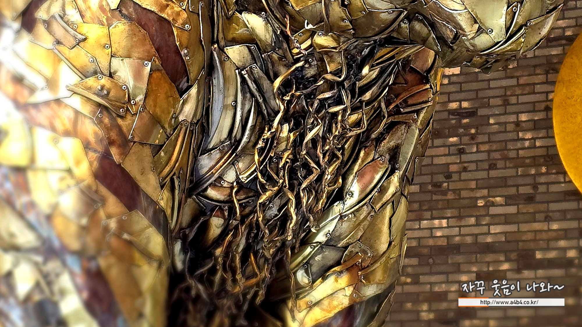 작품재료 : 버려진 양은냄비, 스테인리스 스틸, 철, 리벳, LED 조명