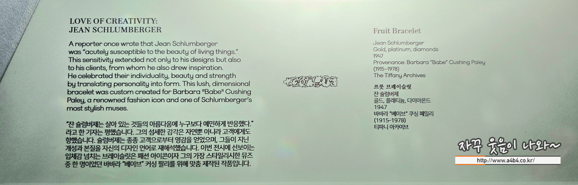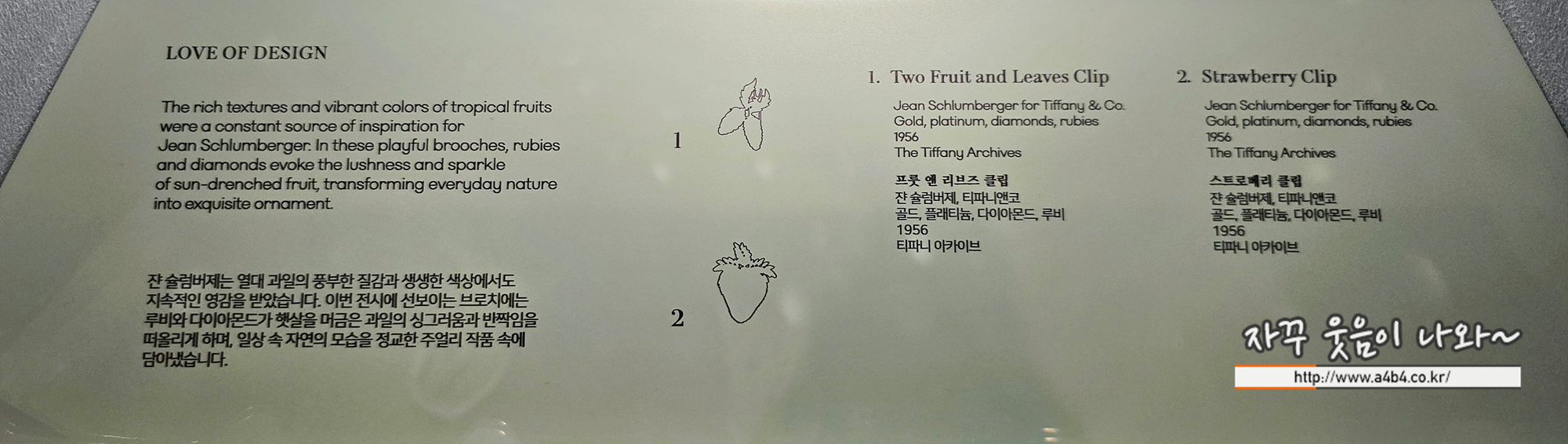 티파니앤코의 With Love, Seoul 전시회 3번째 챕터 Love of Design 건너편에는 해양생물을 모티브로 작업한 쟌 슐럼버제(Jean Schlumberger) 주얼리를 감상할 수 있습니다.