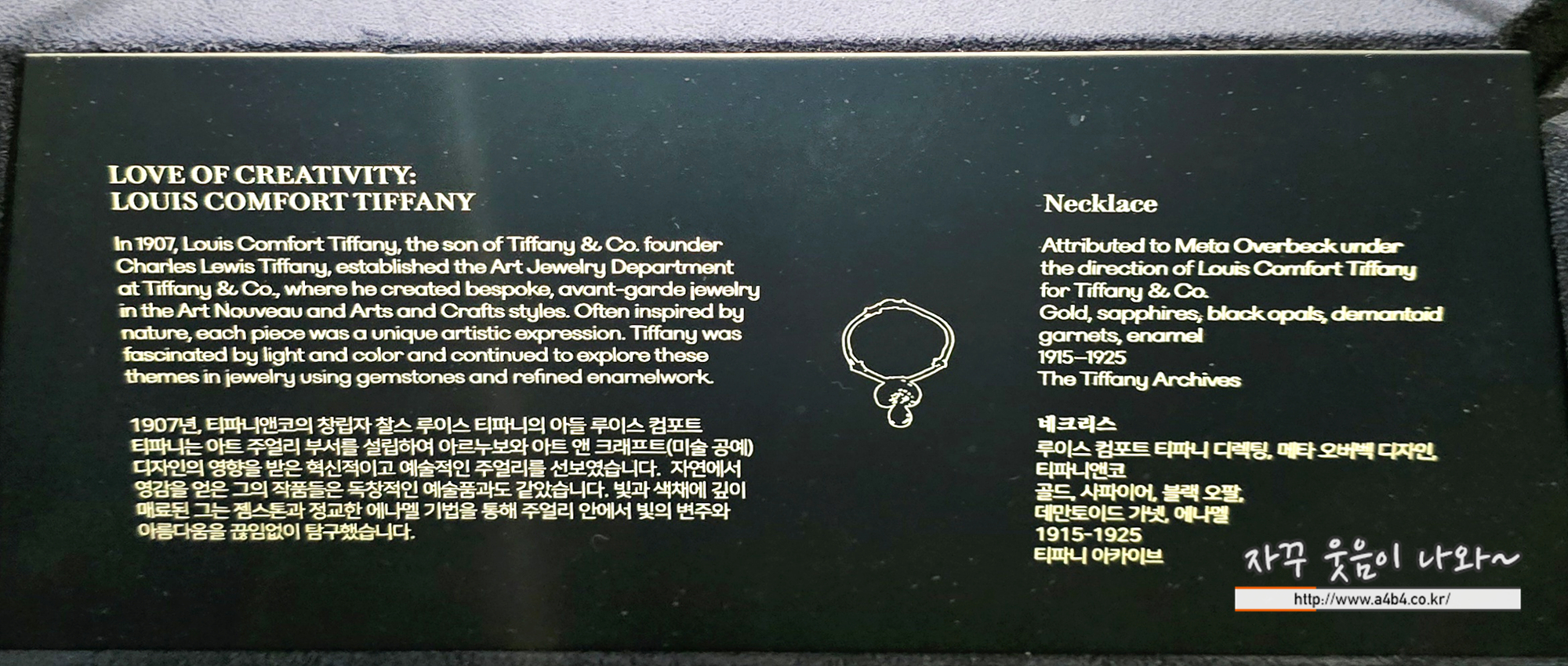 1800년대 말과 1900년대 초 티파니 목걸이를 만나볼 수 있는 공간...