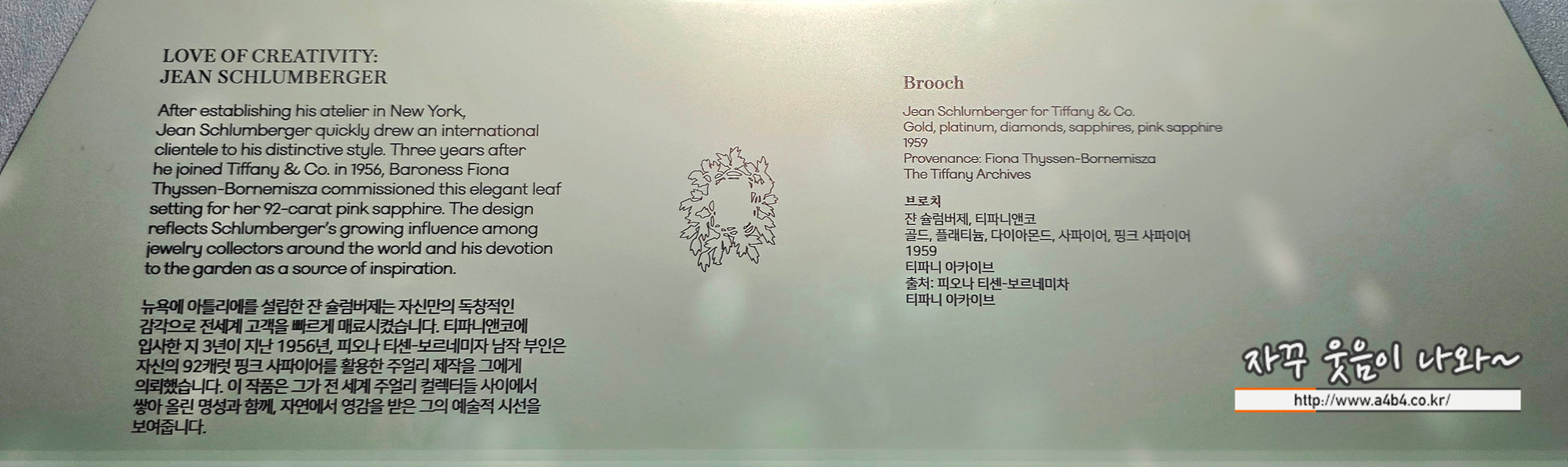티파니앤코의 With Love, Seoul 전시회 3번째 챕터 Love of Design 건너편에는 해양생물을 모티브로 작업한 쟌 슐럼버제(Jean Schlumberger) 주얼리를 감상할 수 있습니다.