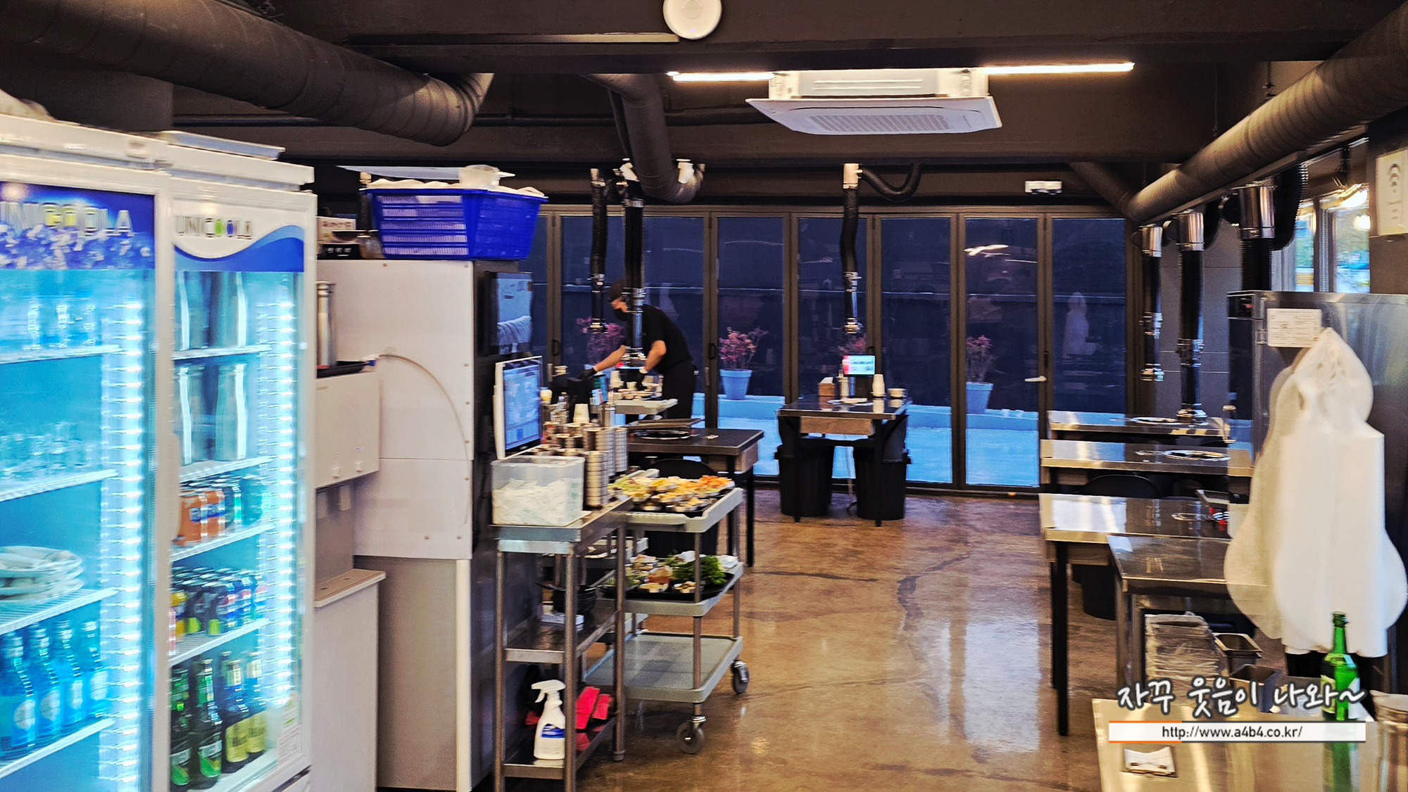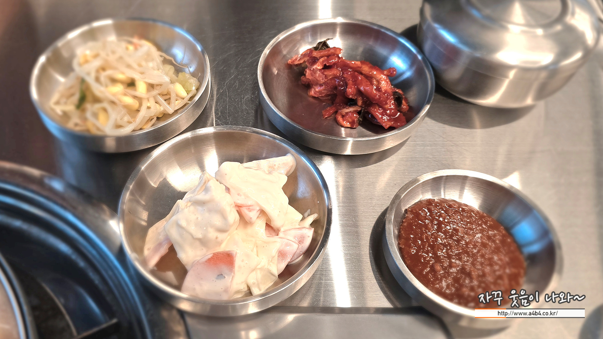 무엇보다도 테이블이 스틸로 되어있는 부분이 마음에 드네요. 고깃집은 이게 더 위생적으로 관리할 수 있을 듯