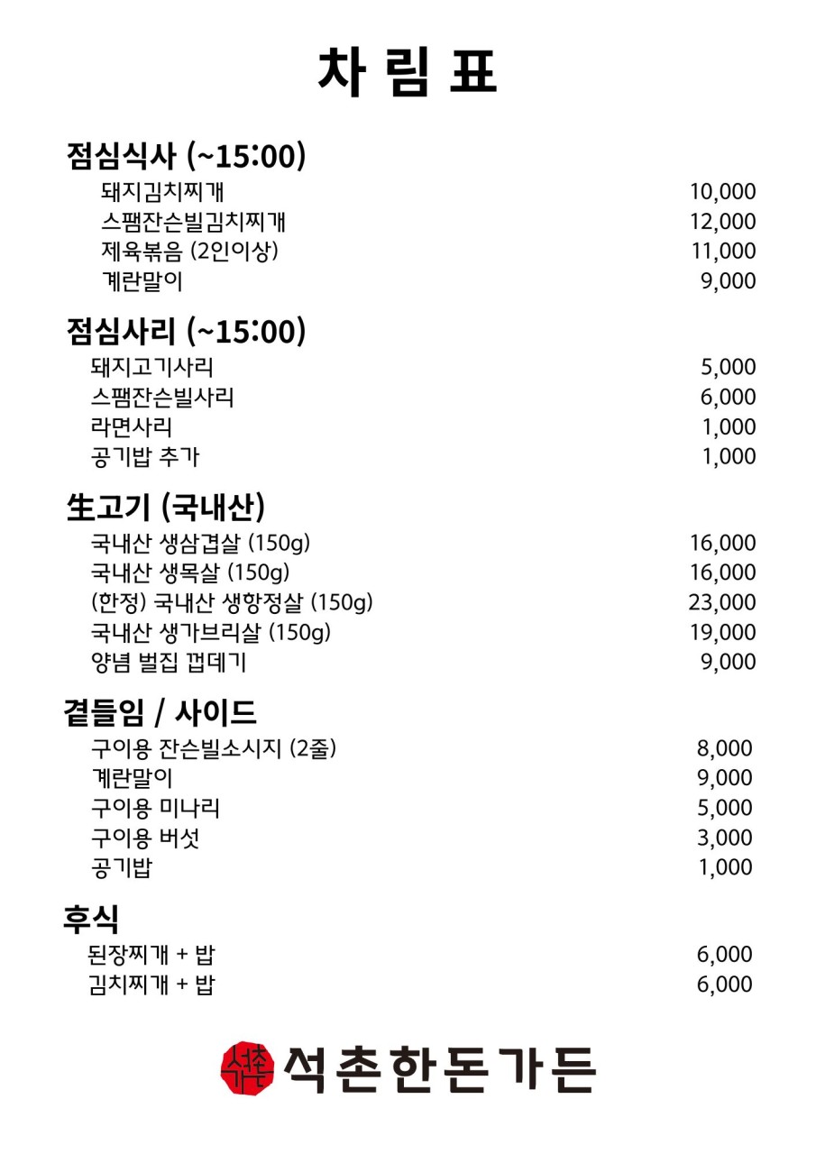 | 석촌한돈가든 메뉴 및 가격
