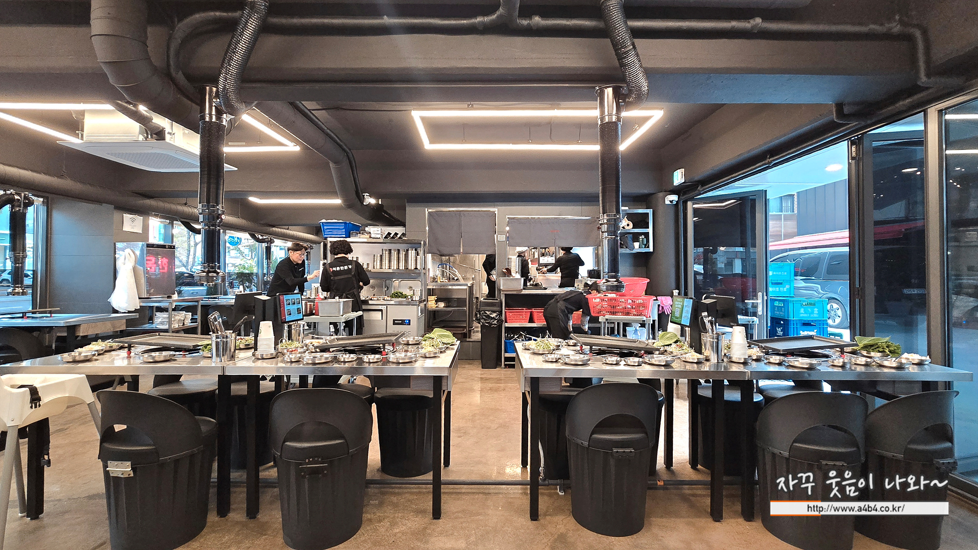 무엇보다도 테이블이 스틸로 되어있는 부분이 마음에 드네요. 고깃집은 이게 더 위생적으로 관리할 수 있을 듯