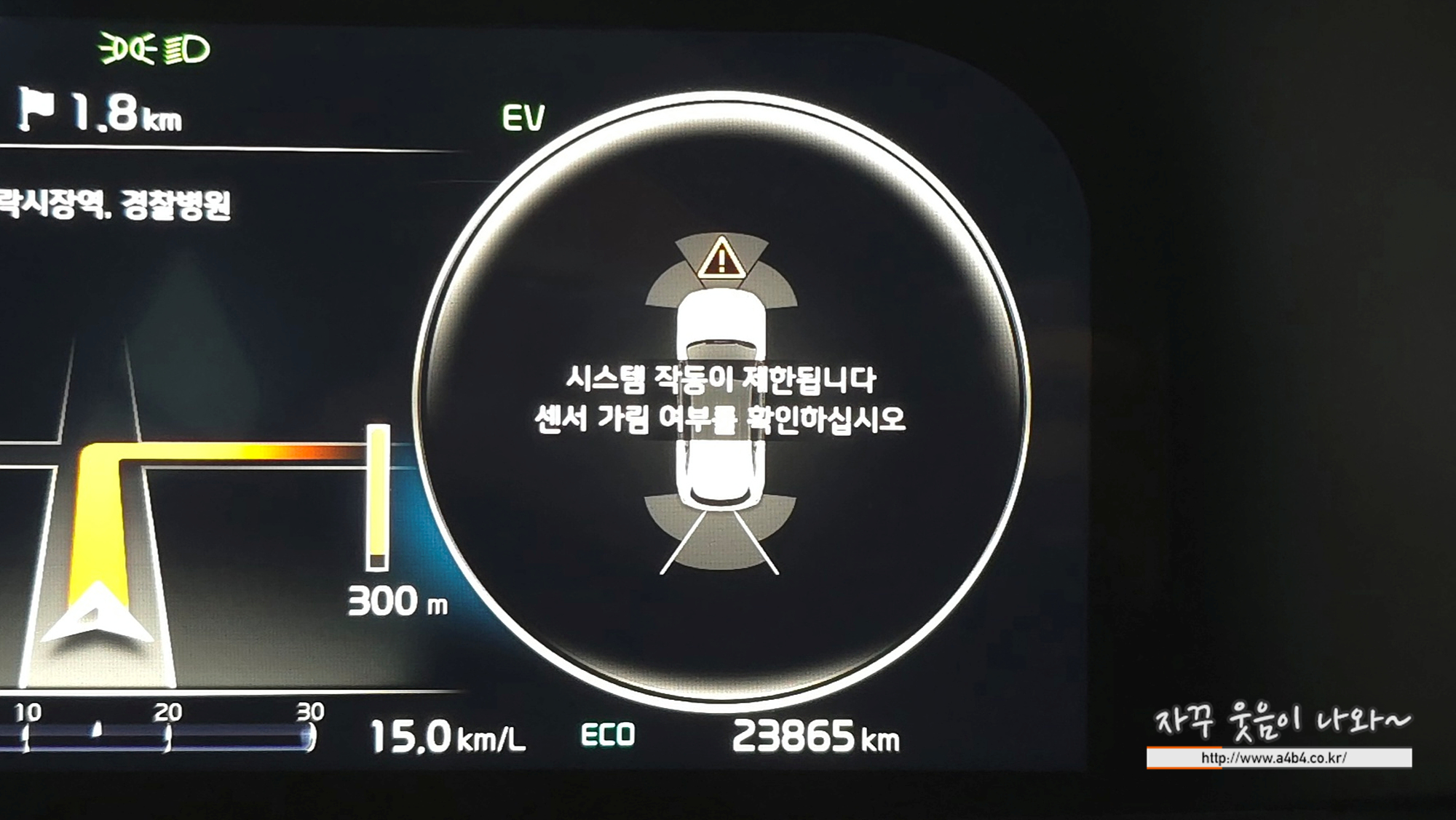 시스템 작동이 제한됩니다. 센서 가림 여부를 확인하십시오 해결방법은 사실 정비소 가셔야 합니다.