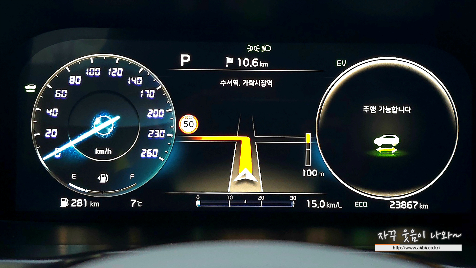전면 레이더 센서도 정상작동합니다.