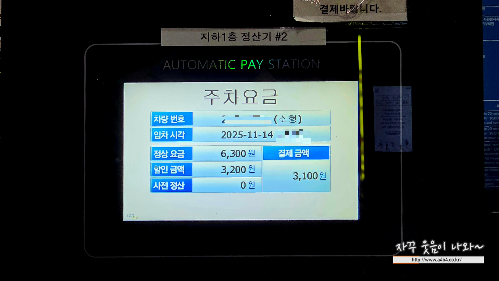 경차나 친환경차량, 전기차는 주차장에 있는 무인주차정산기에서 할인요금 반영됩니다만, 다둥이 가족의 경우에는 유인 정산기에서 확인 후 정산됩니다.