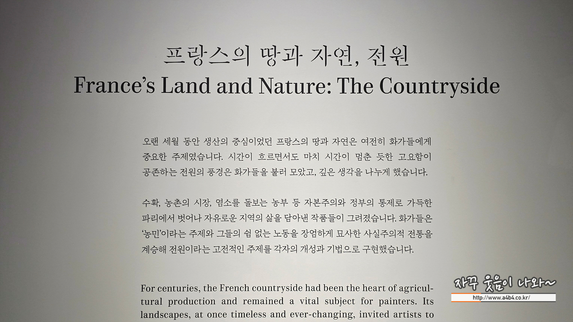 프랑스의 땅과 자연은 오랜 세월 생산의 중심이었고, 여전히 화가들에게 중요한 주제였다. 시간의 흐름 속에서도 고요함이 머무는 전원 풍경은 예술가들을 끌어당기며 깊은 사색을 불러일으켰다.
