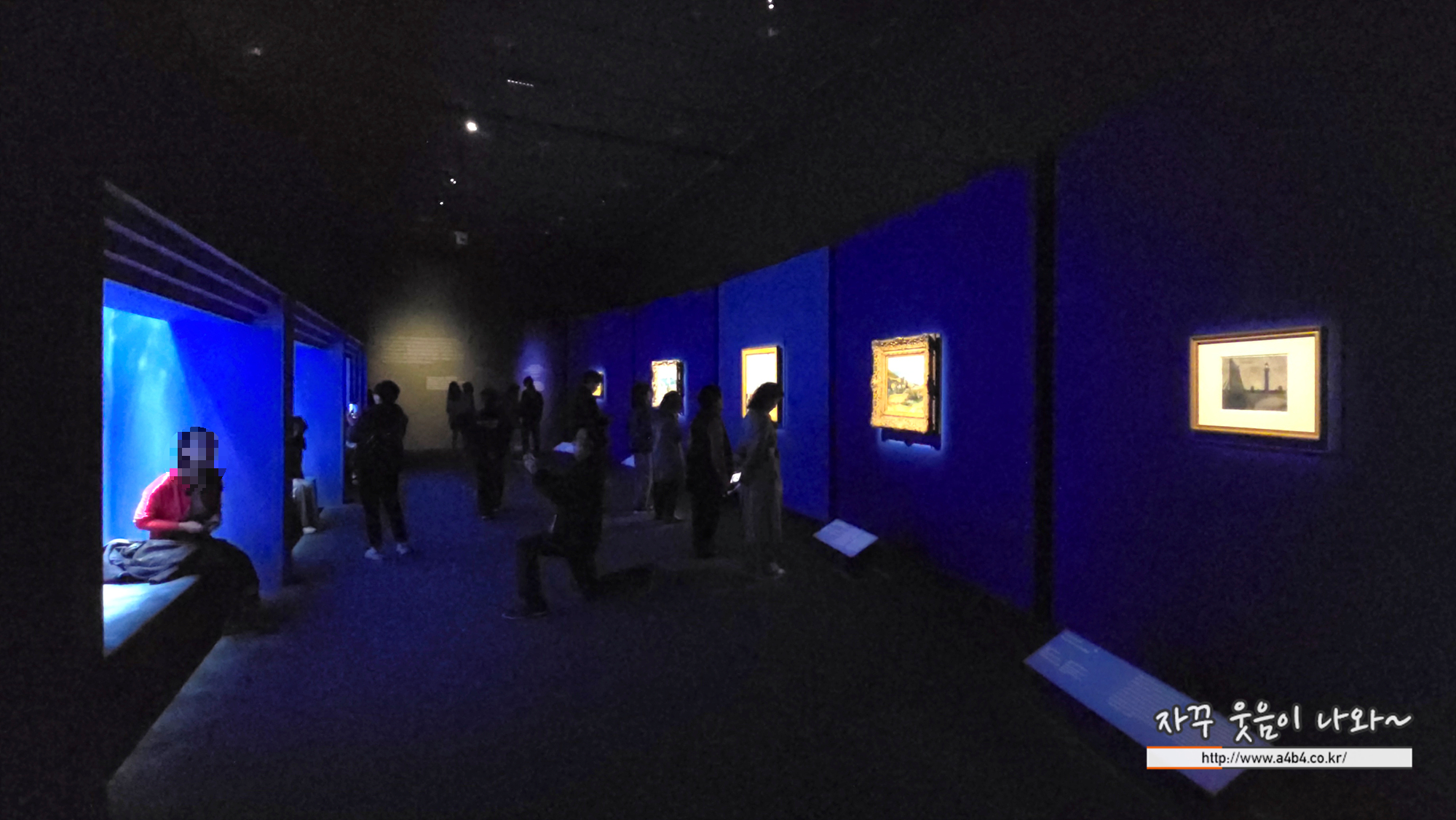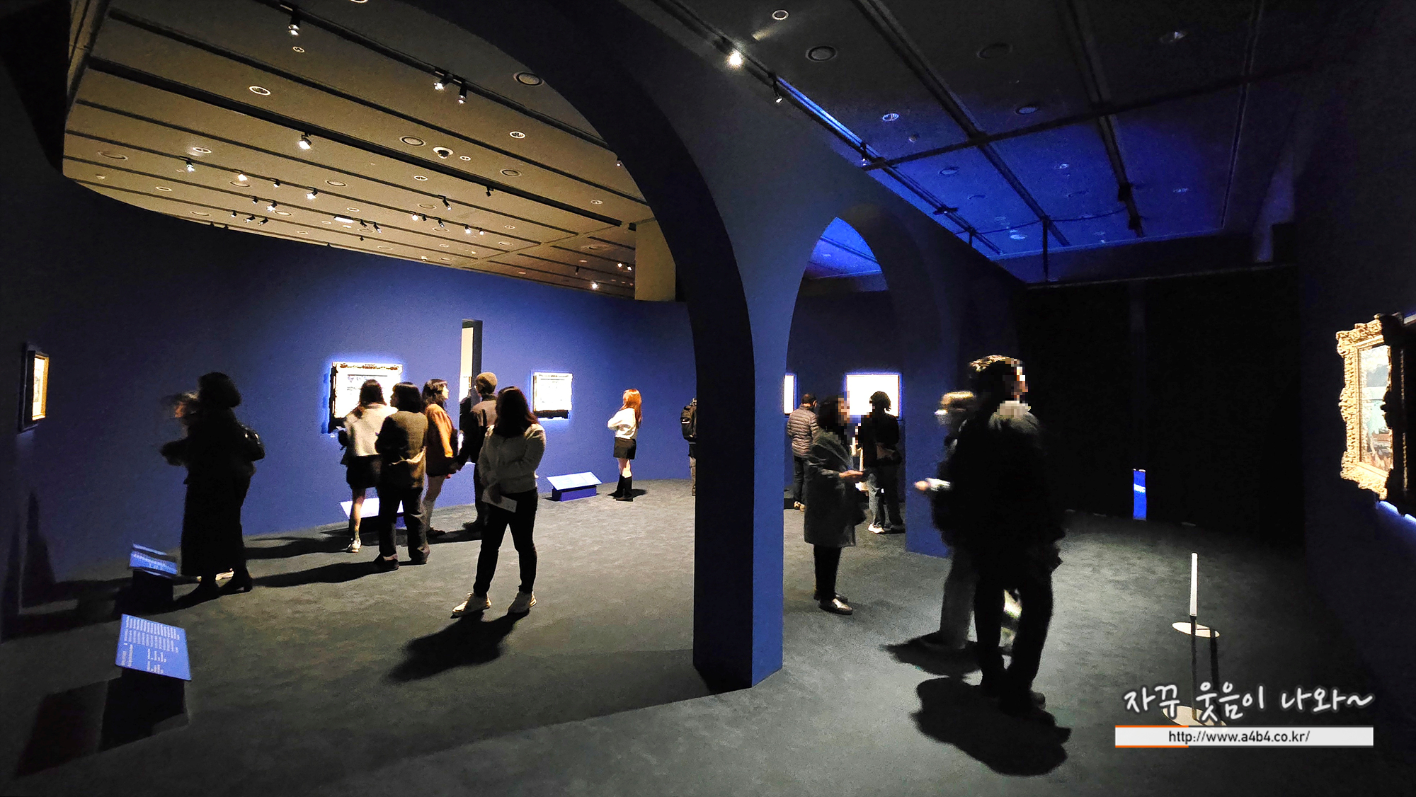 국중박 전시회 메트로폴리탄박물관 소장 로버트 리먼 컬렉션 마지막 전시공간 주제는 바다 입니다. 깊은 심연이 연상되는 진한 코발트 블루 컬러와 어두운 조명이 인상적인 공간입니다.