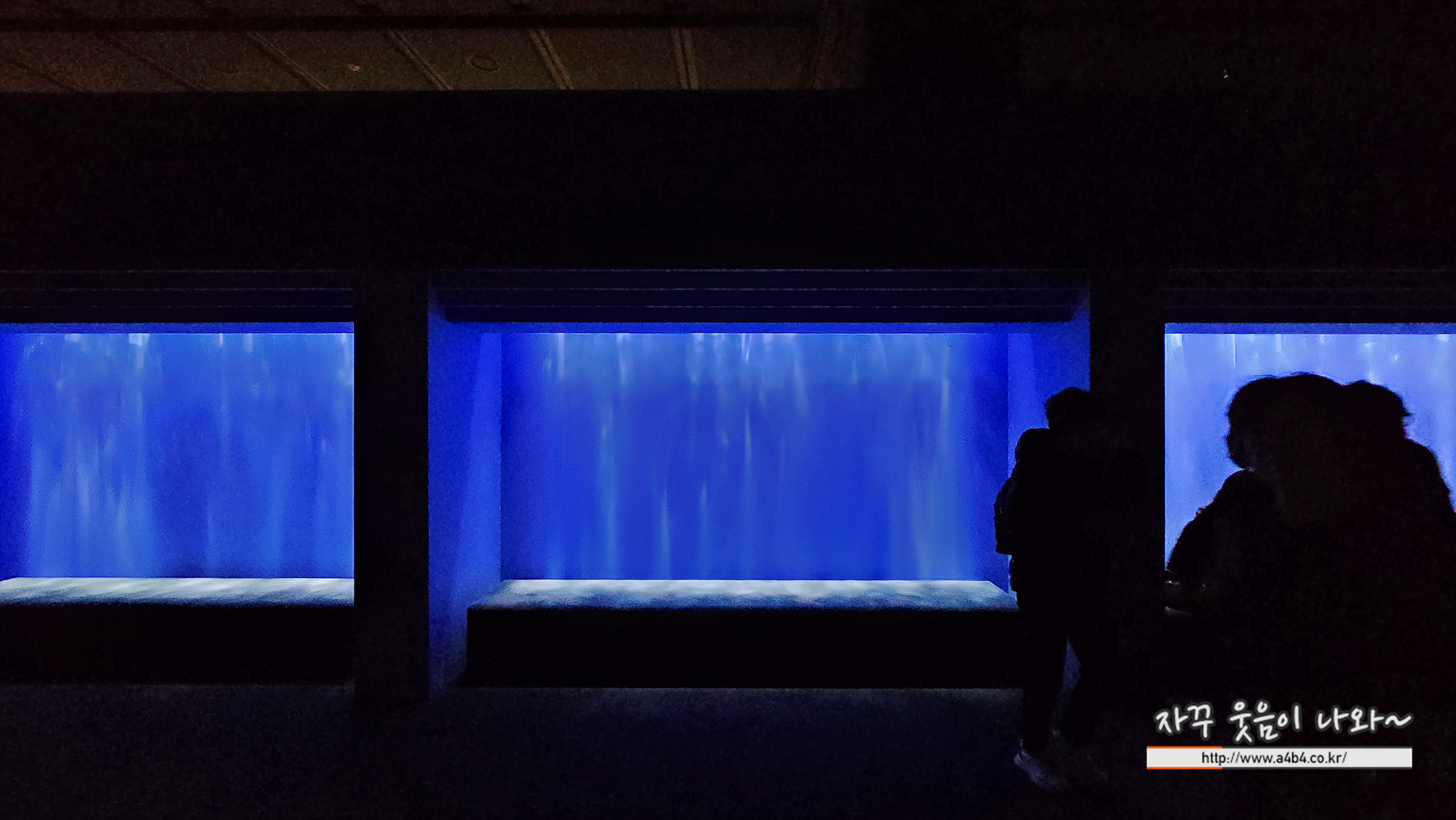 전시장 뒷편에는 마치 바닷물이 흘러내리는듯한 벽면과 의자가 세팅되어 있습니다. 여기에 앉아서 건너편 작품 감상하면서 휴식이 가능합니다.