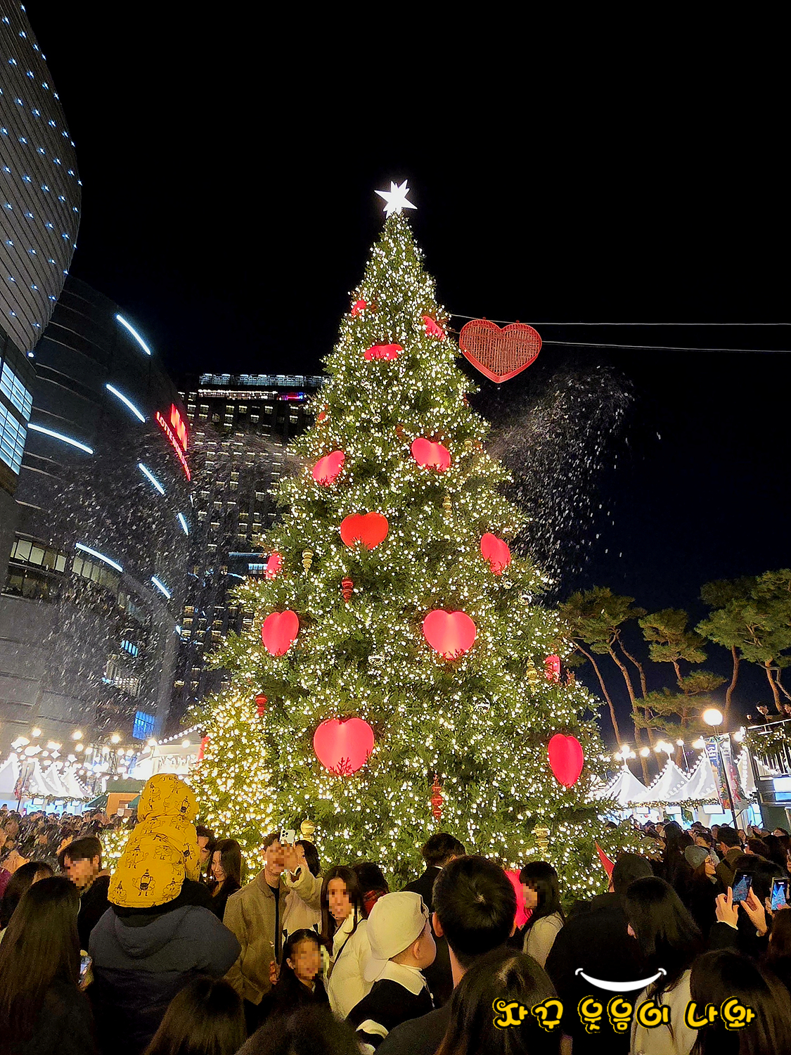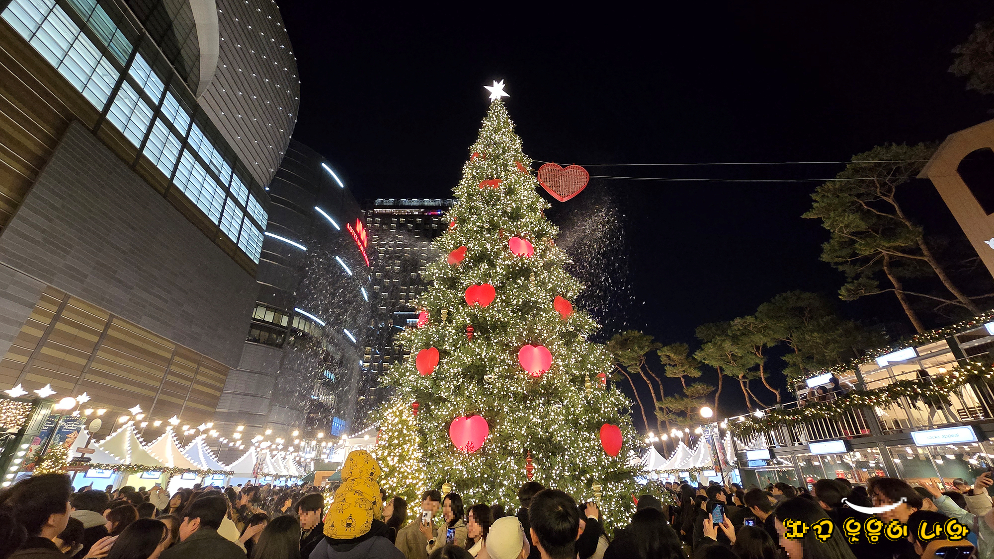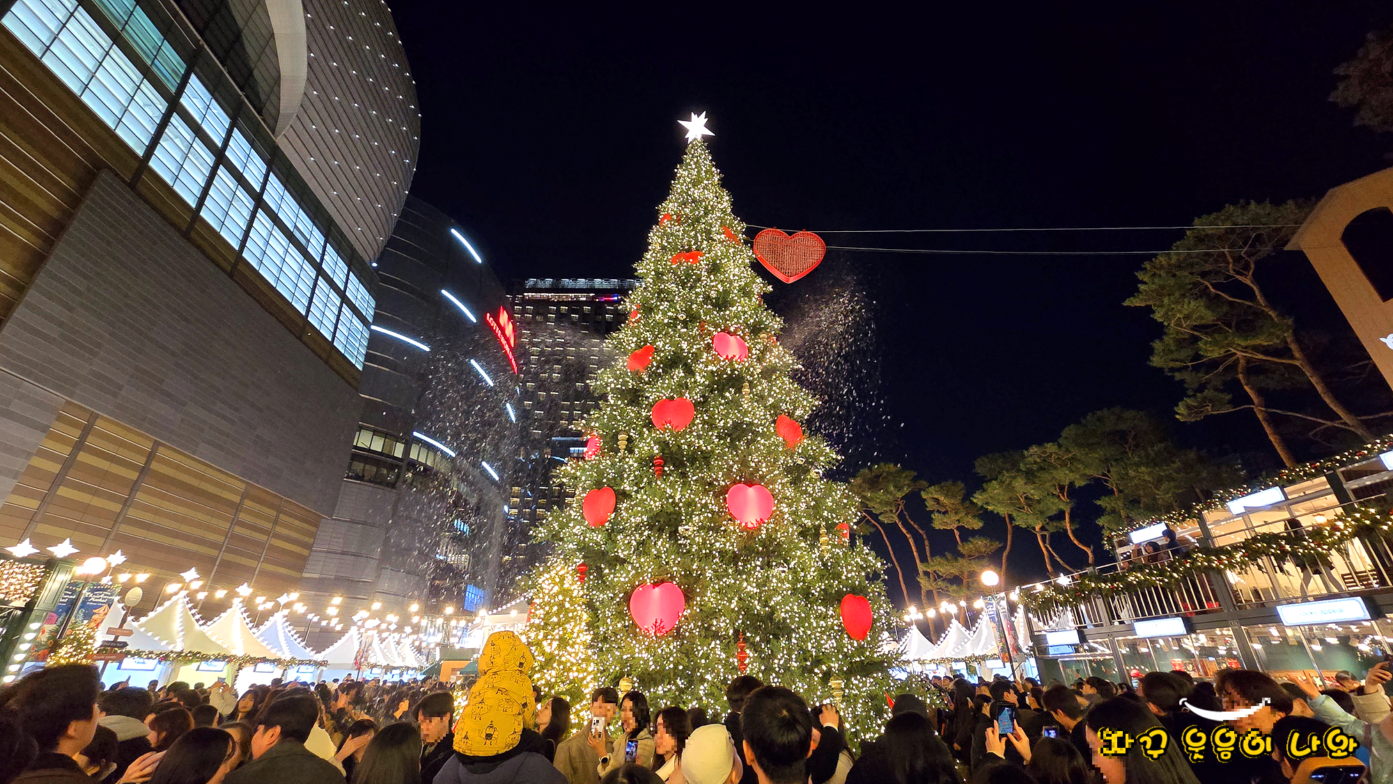 저녁 3회 움직이는 대형 하트와 크리스마스트리 점등식이 열리는데요. 특히 17:30, 19:00, 20:30 에는 하트 라이트쇼와 함께 눈이 내리는 스노우샤워를 동시에 감상할 수 있습니다.