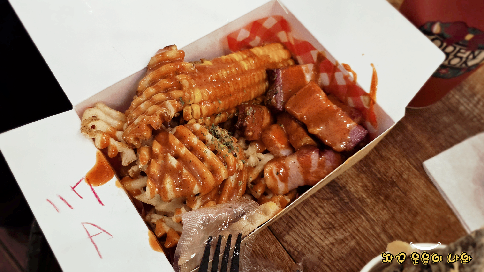 인원대비 테이블수가 너무 부족하네요. 음식 들고 기약없는 웨이팅이 있을 수 있으니, 일행 중 한 명은 자리확보하시고 나머지 일행은 음식주문 하세요.