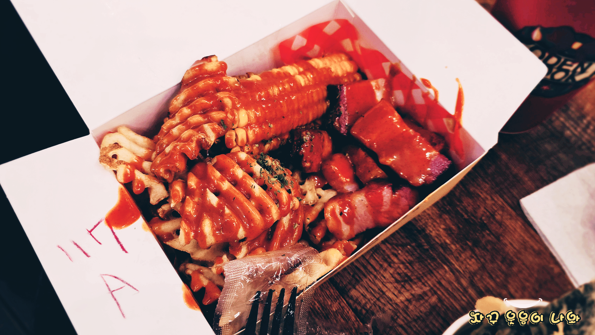 잠실 롯데타운 크리스마스 마켓 음식 가격은 다소 비싸네요. 사진속 떡볶이 6,500원, 치즈김말이 7,500원 = 14,000원 입니다.