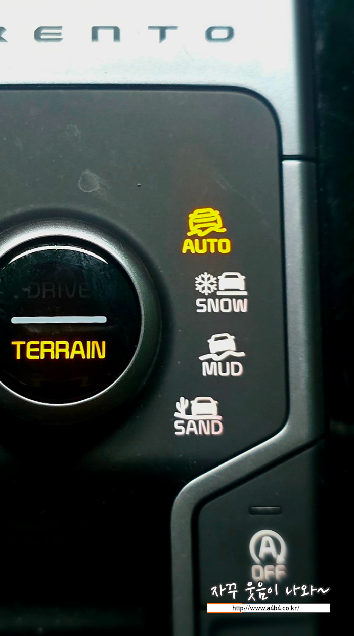 기아 쏘렌토 하이브리드 기준 눈길, 진흙, 모래 등 상황에 따라 사륜구동 방식을 제어하는 Terrain 기능이 있으나, 일반 전륜구동 차량에는 해당 기능은 제공되지 않습니다.
