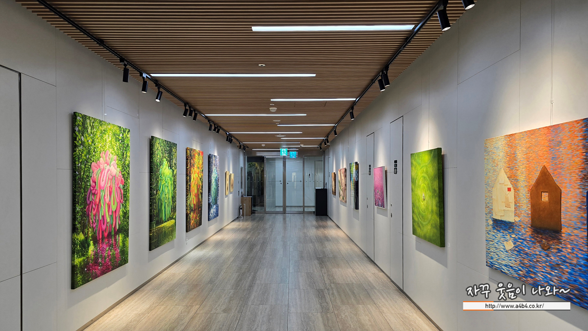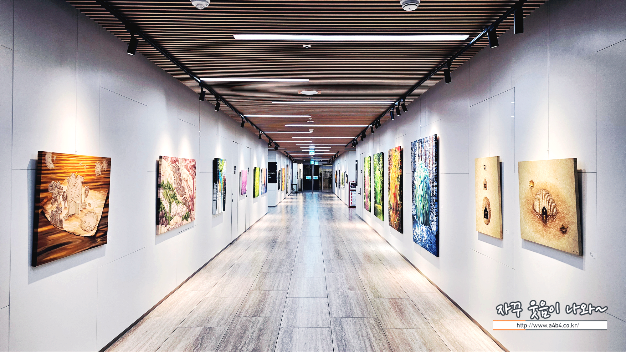 이번 김별 전시회가 열리고 있는 BGN 갤러리 모습입니다. 십자형 전시공간으로 사진속 공간에서 약 30여점의 작품을 만나볼 수 있습니다.