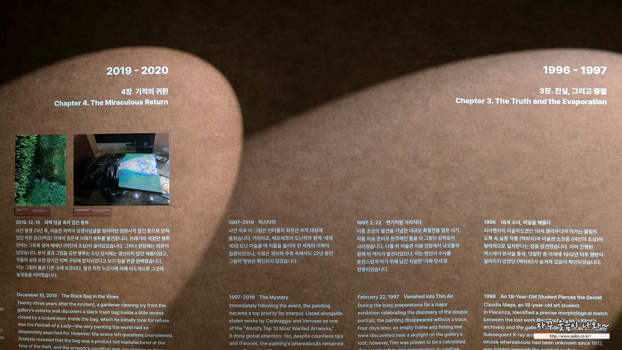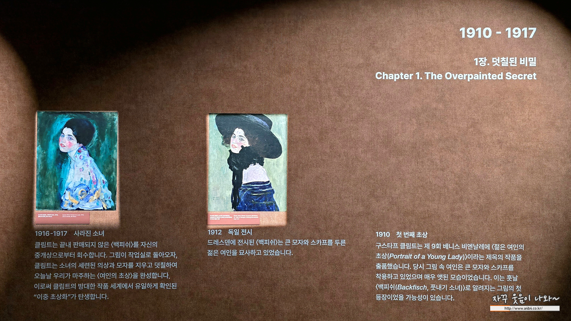 반대쪽 벽면에는 클림트 여인의 초상에 대한 이야기가 있습니다.