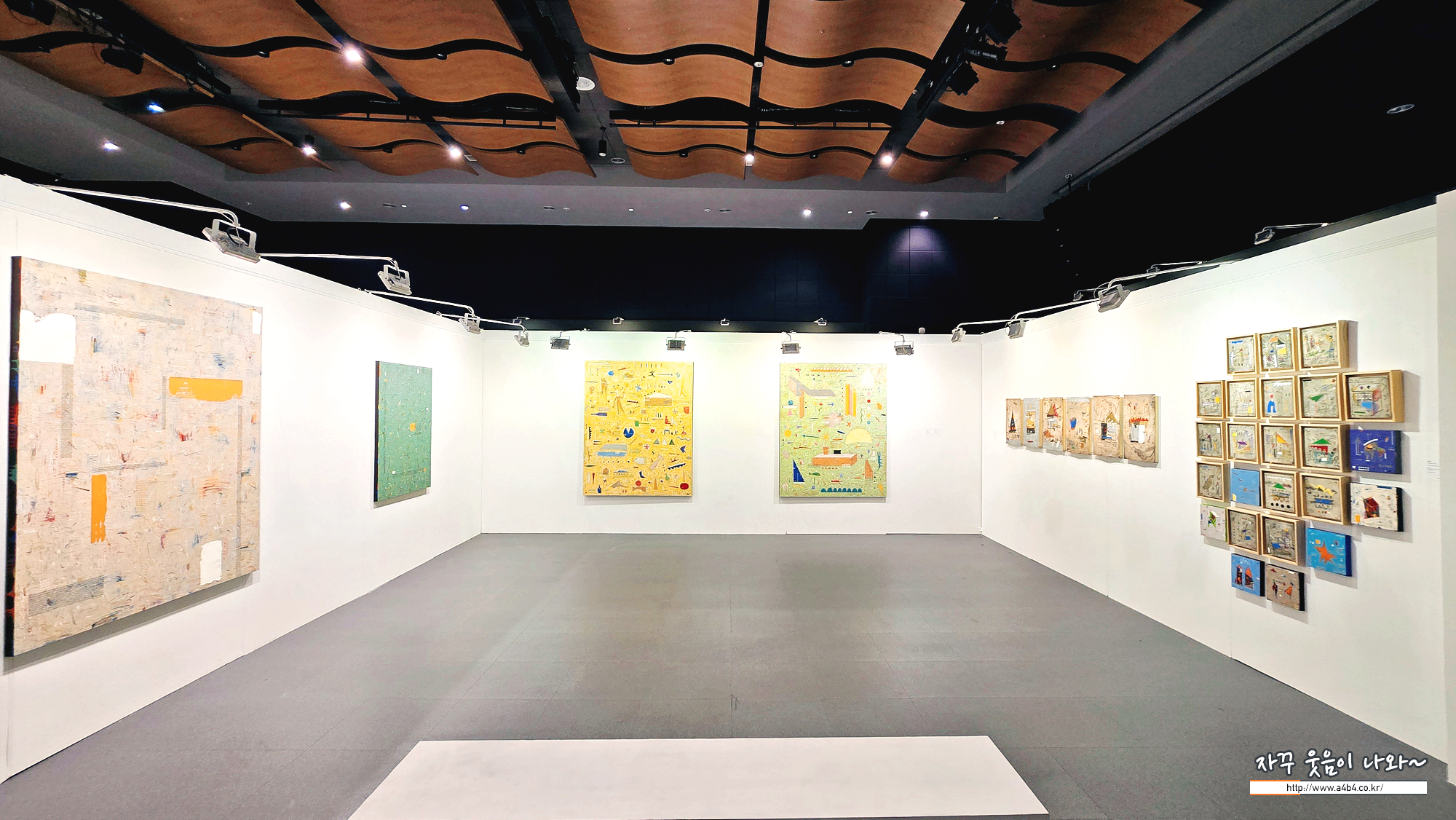 전시장 구성은 아트페어 느낌이 나게 구성되어 있습니다. 작가별 두 세점의 작품들이 전시되어 있는데요.