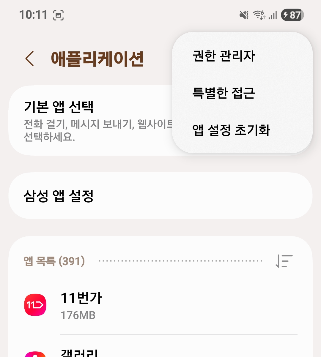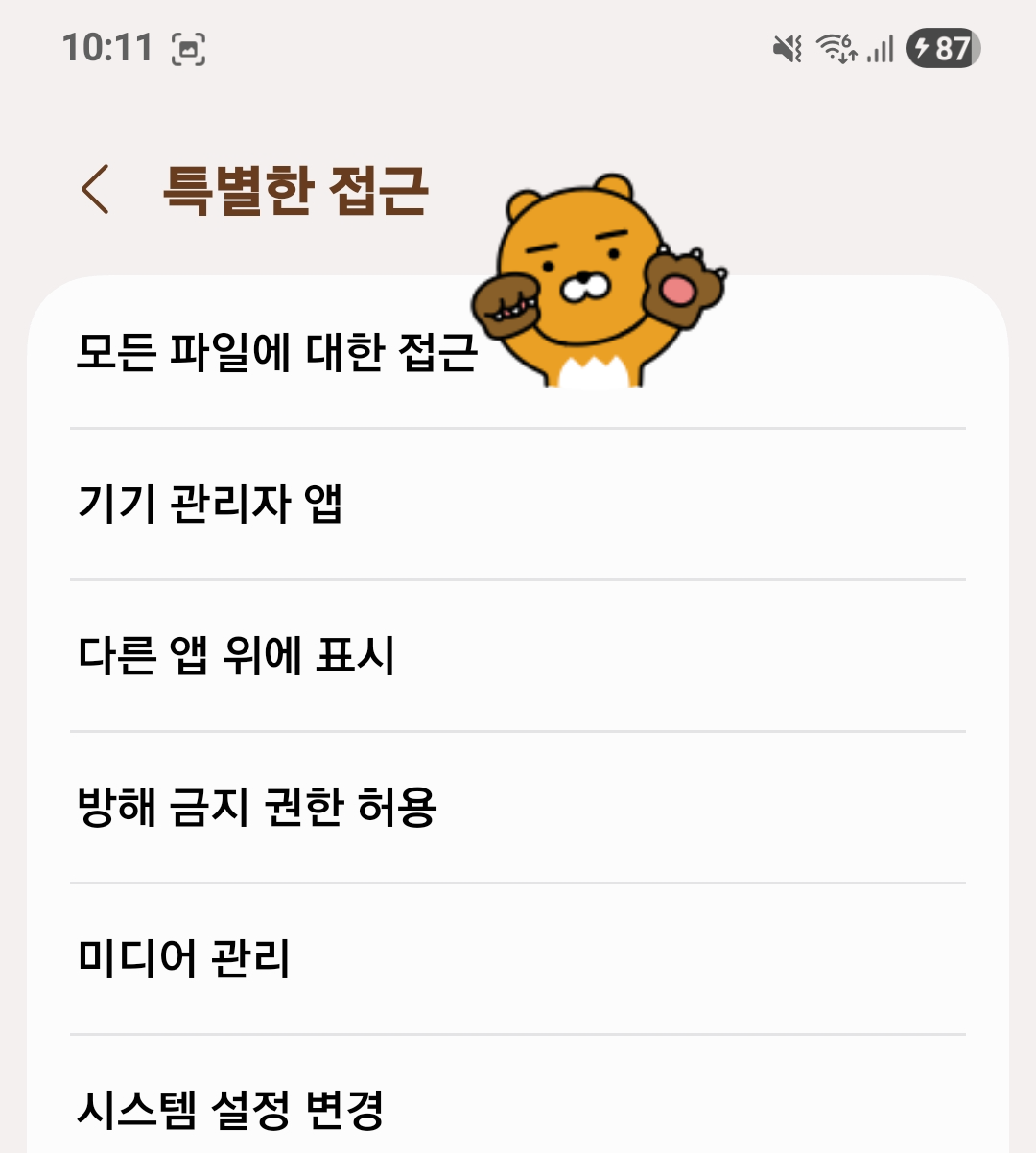애플리케이션 메뉴 접속 > 우상단 메뉴 선택 > 특별한 접근 선택