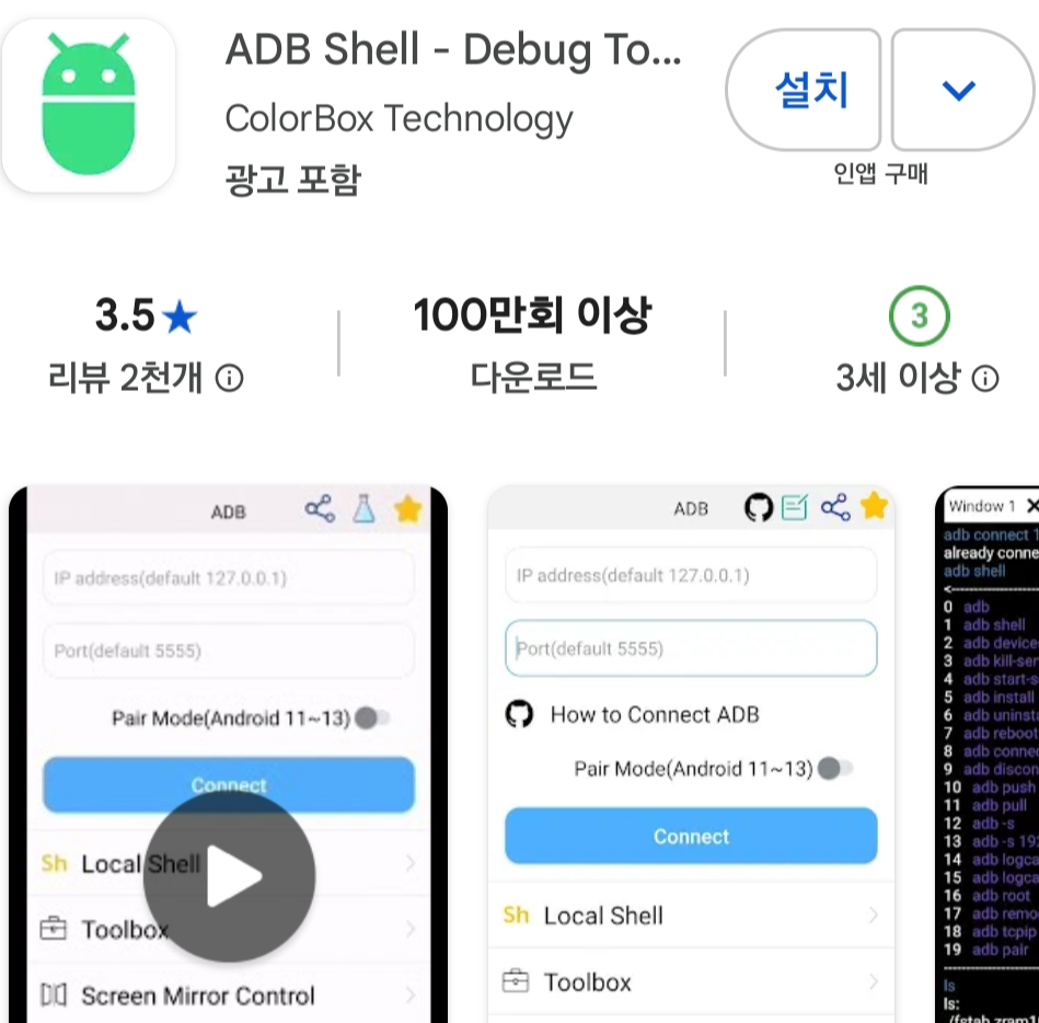 다만 ADB 앱이 바로 설치되지 않습니다.