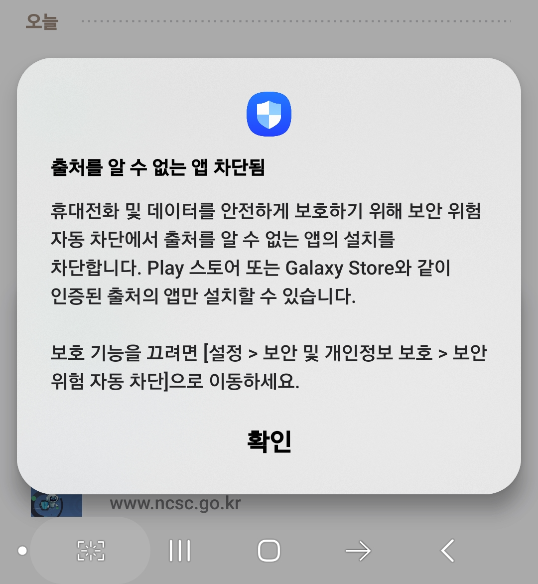 다만 해당기는은 스마트폰 보안에 심각한 위험을 초래할 수 있습니다. 이번 갤럭시 S25 카메라 무음 설정이 끝나면 해당 '보안 위험 자동 차단' 설정을 다시 활성화 하셔야 합니다. 꼭 기억하세요