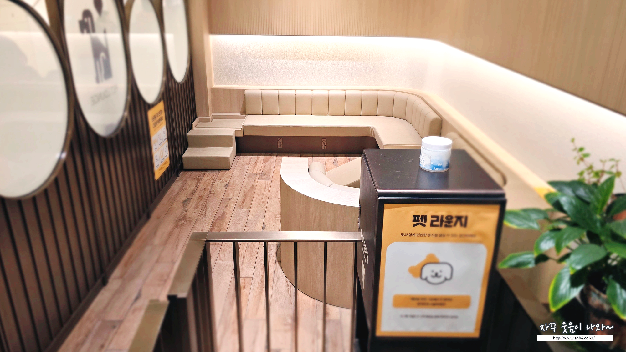 스타필드 하남 1층에는 강아지와 함께 휴식을 취할 수 있는 공간인 펫라운지가 있습니다. 강아지 간식이나 밥도 먹일 수 있고 배변처리도 가능한 공간입니다.