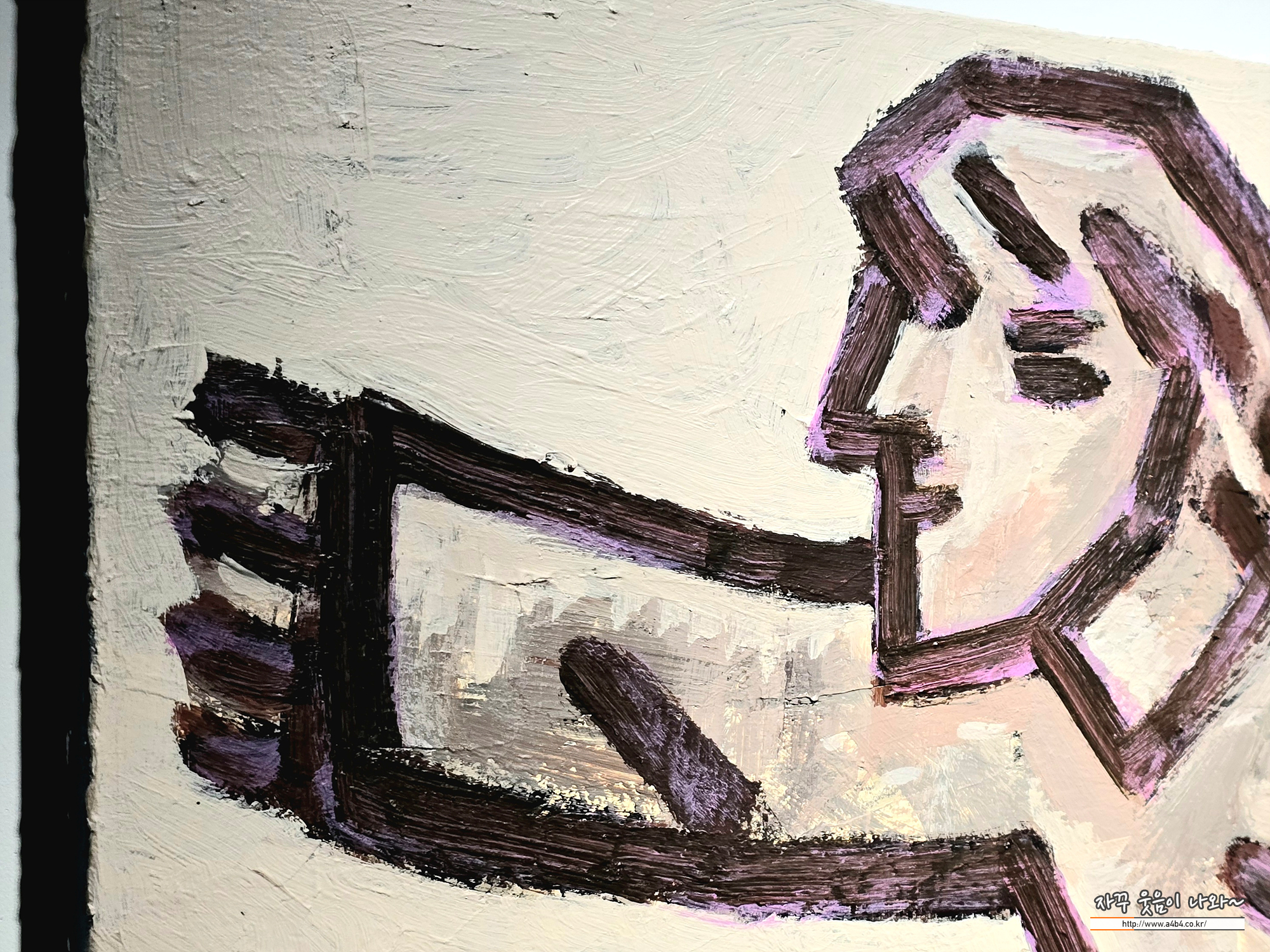 이번 전시회 작품은 회화와 조각작품으로 구성되어 있는데요. 회화작품은 캔버스에 아크릴 물감으로 작업했습니다. 거칠고 굵은 선이 너무나도 인상적인 작품들...