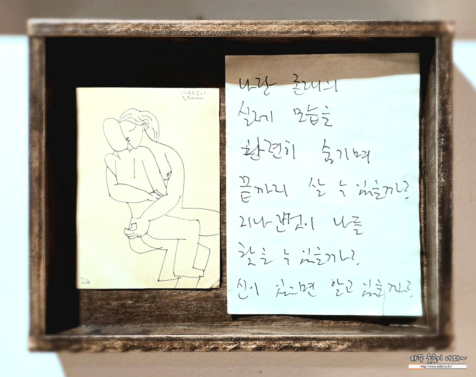 에브리데이몬데이 갤러리 2층 구석 벽면에 작가 메모가 붙어 있습니다.