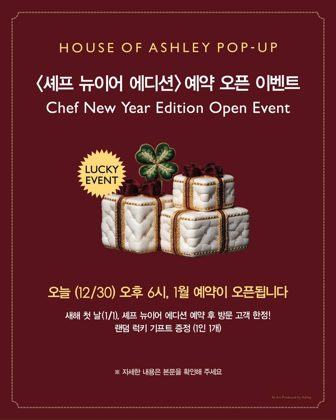 성수 애슐리 팝업스토어 '하우스오브 애슐리' 2026년 신규 메뉴인 '셰프 뉴이어 에디션' 예약 및 1월 1일 식사후기입니다. 음식과 서비스는 전반적으로 마음에 들었지만, 아쉬운 부분 하나 있었네요.