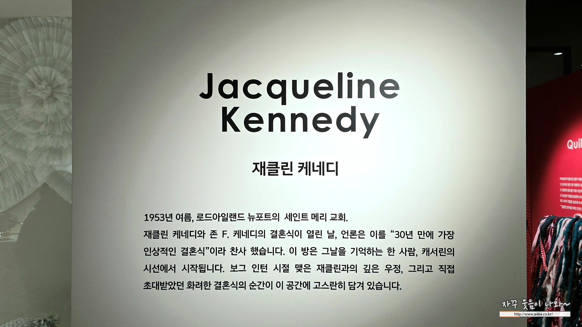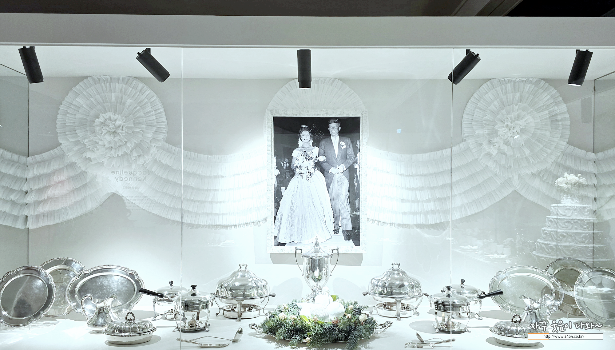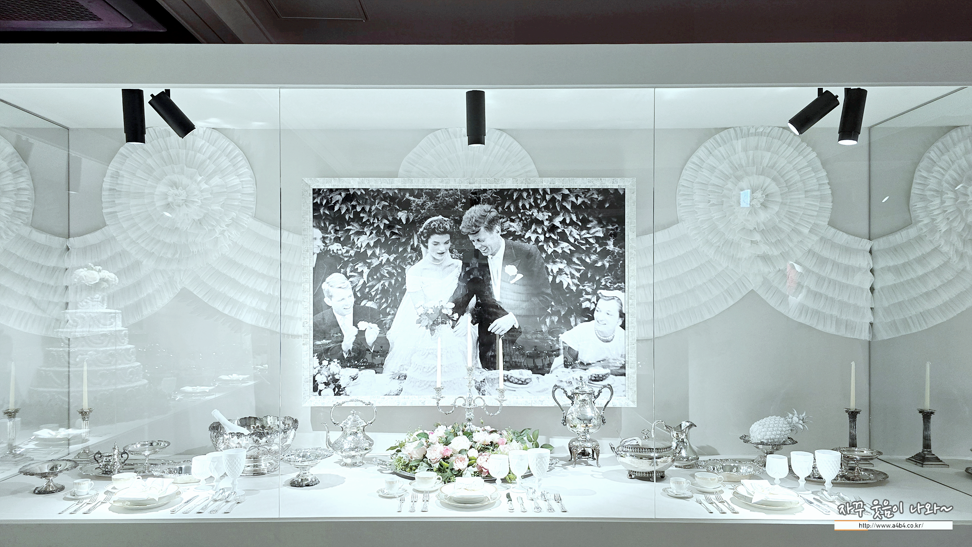하우스 오브 애슐리 3번째 공간입니다. 이곳은 존 F 케네디와 재클린 결혼식 순간을 전시한 공간인데요. 엄청나게 이쁜 포토존이 세팅된 곳 중 하나입니다.