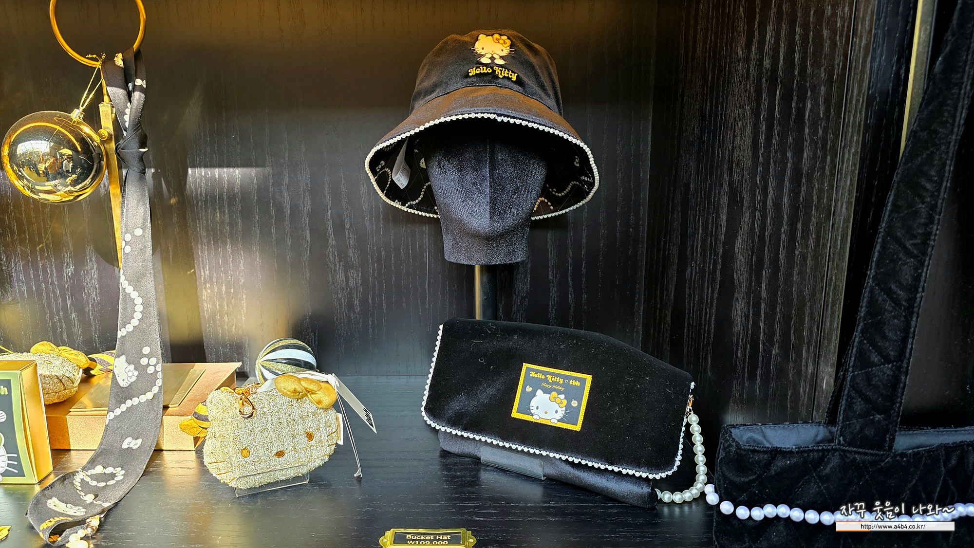 TBH 키티 가방, 모자 등 블랙과 골드 컬러로 제작된 키티 소품들도 만나볼 수 있는데요. 기본 가격이 10만원 이상이네요. 상당히 고급스럽고 이쁜 제품들입니다만...