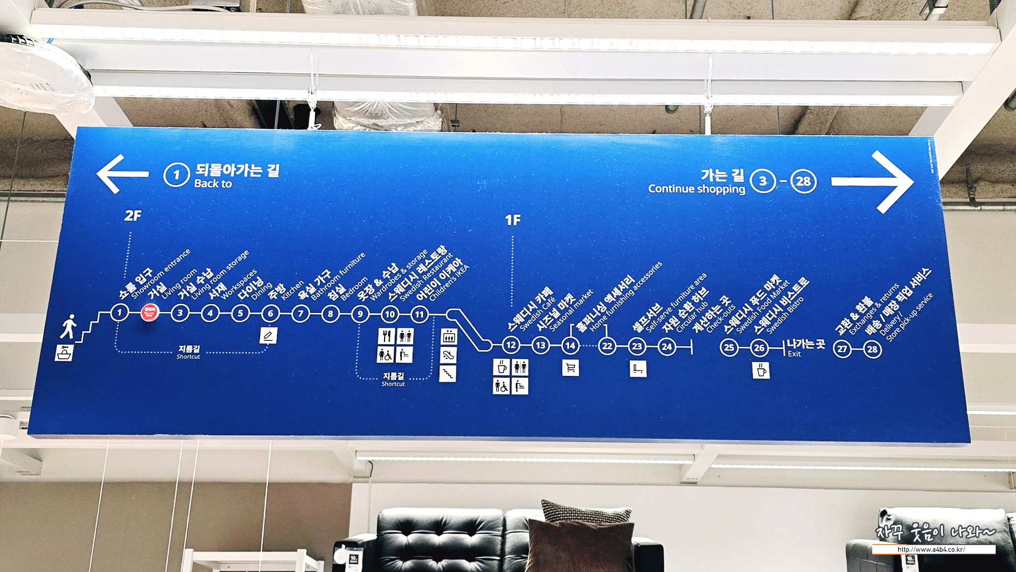 이케아는 1층과 2층에 위치해 있고요. 다른 이케아와 비슷하게 윗층인 2층부터 쇼핑하고 1층으로 내려와서 가구 구매 및 결제가 가능합니다.