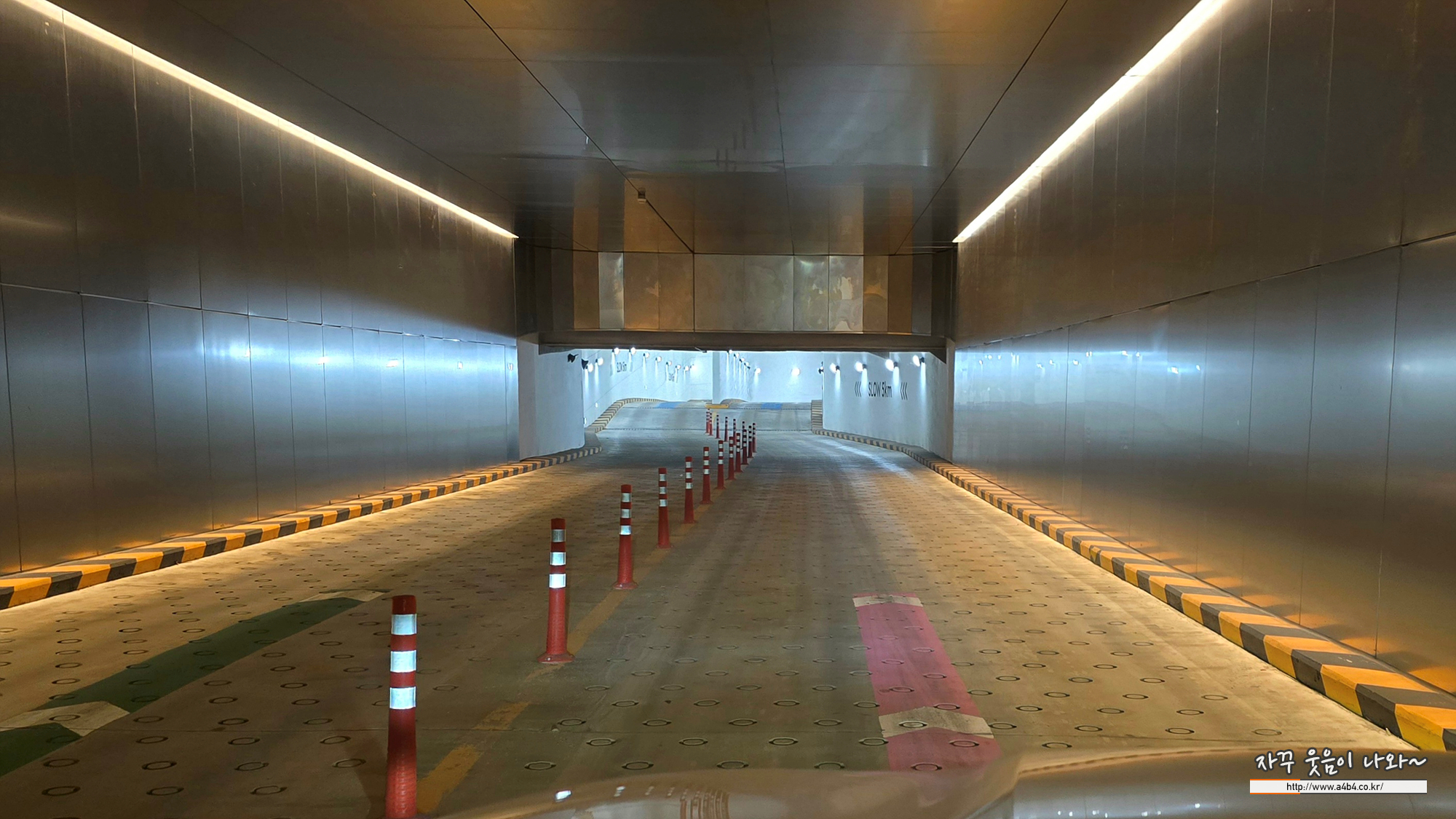이케아 강동 주차장으로 내려가는 진출입로 입니다. 급커브나 급경사는 없고요. 차폭도 좁지 않아 운전에 큰 어려움은 없습니다. 그렇다고 도로폭이 아주 여유있지는 않습니다. 초보운전자가 대형차량으로 방문시에는 다소 어려울 수 있습니다.