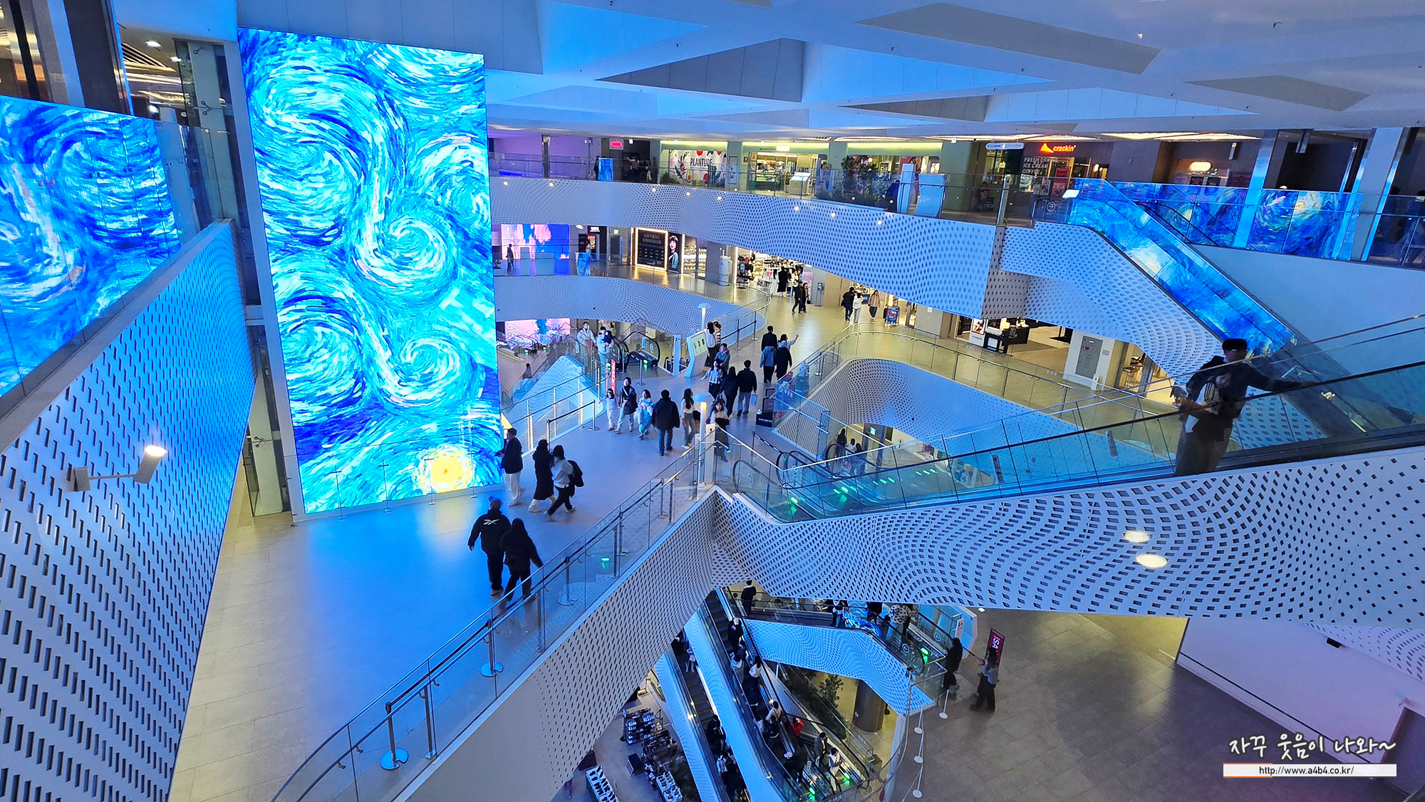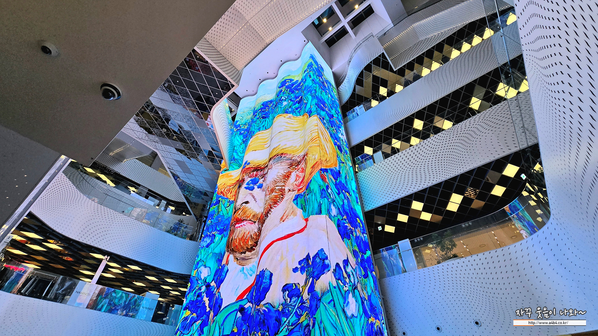 먼저 더리버몰 중앙에 있는 거대한 사인 고흐의 자화상이 미디어아트로 선보이고 있습니다.