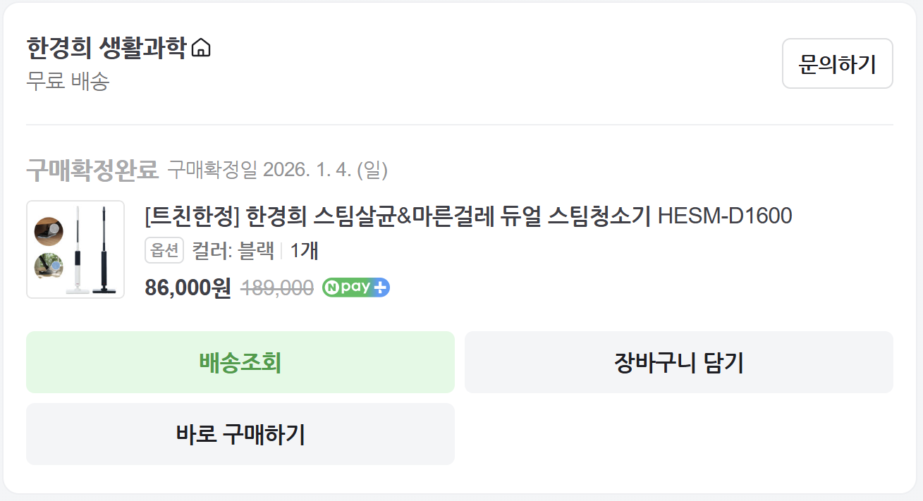 HESM-D1600 가격은 리뷰 작성하는 현 시점 최저가는 10만원 초반입니다. 저는 연말 한경희 생활과학 네이버스토어 프로모션을 통해 배송비 포함 신품 86,000원에 구입했습니다. 아마도 당분간이 이런 최저가는 없을 것 같네요.