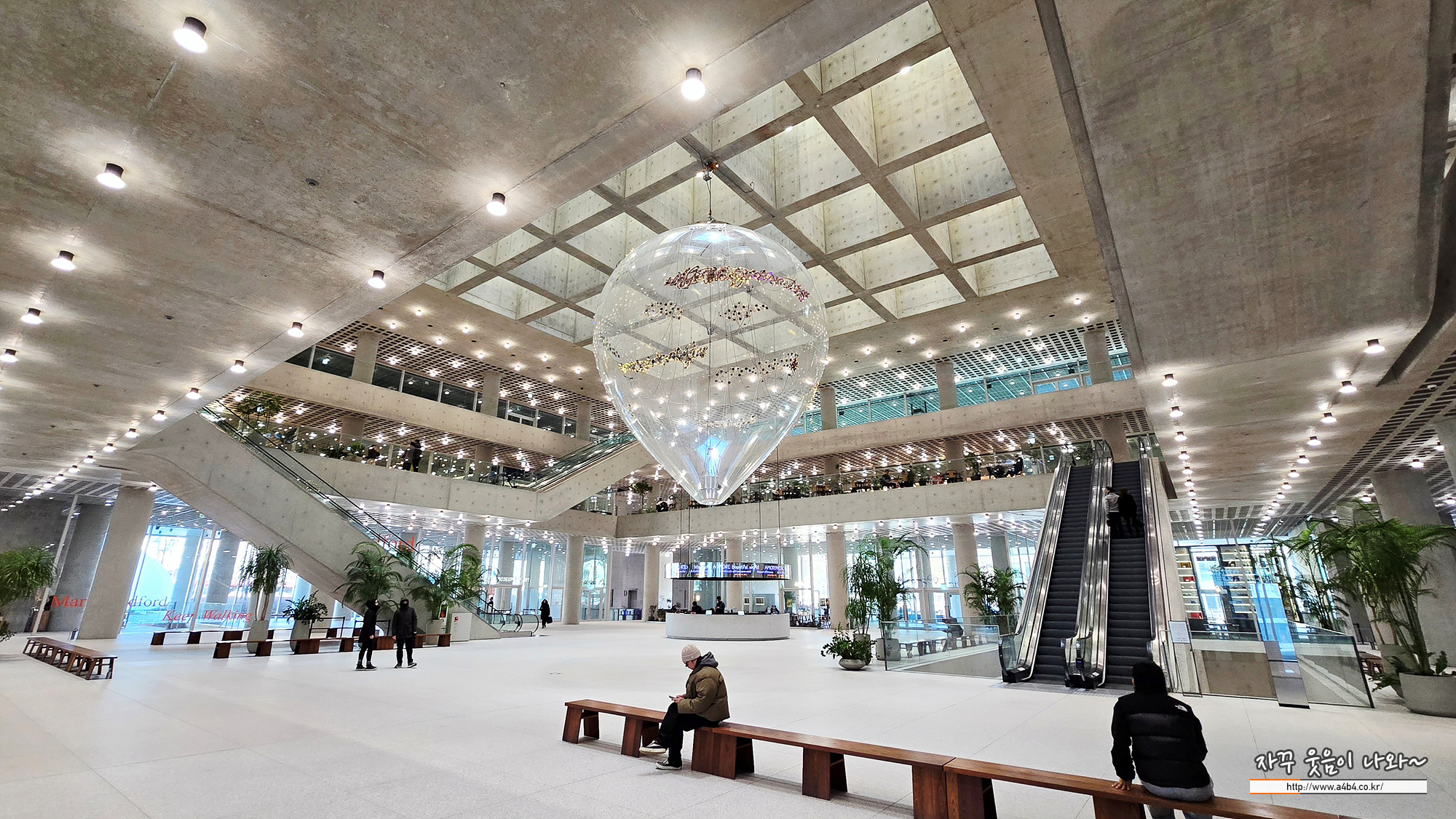 또한 로비에서 부터 작품을 보면서 에스컬레이터를 타고 2층으로 이동하면서 작품을 바라보는 느낌도 새롭게 다가옵니다. 아모레퍼시픽 본사 공간을 잘 활용한 이불 작가의 설치미술이라는 생각이 드네요. (이런 작품을 수용할 수 있는 공간이 어디에 또 있을지...)