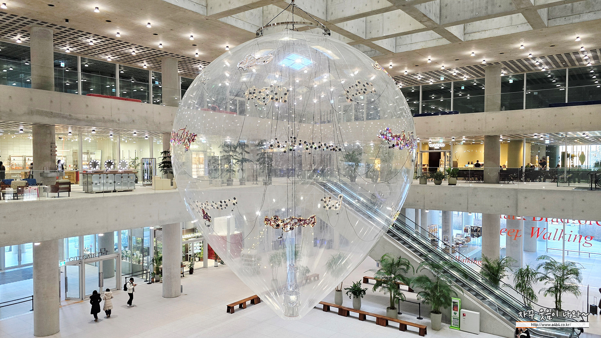 이번 아모레퍼시픽 본사 로비에 설치된 설치미술 작가 이불(Lee Bul, 61)의 대형 설치 작품 ‘Willing To Be Vulnerable - Transparent Balloon’(2025)은 공중에 떠 있는 풍선 형태의 이 작품은 가볍고 투명한 필름과 공기의 흐름을 활용해 부유하는 듯한 시각적 긴장감을 만들어냅니다. 경쾌함과 위태로움이 공존하는 조형은 이상과 현실, 강인함과 취약함 사이의 복합적인 감정을 촉각적으로 환기하고 있는데요.