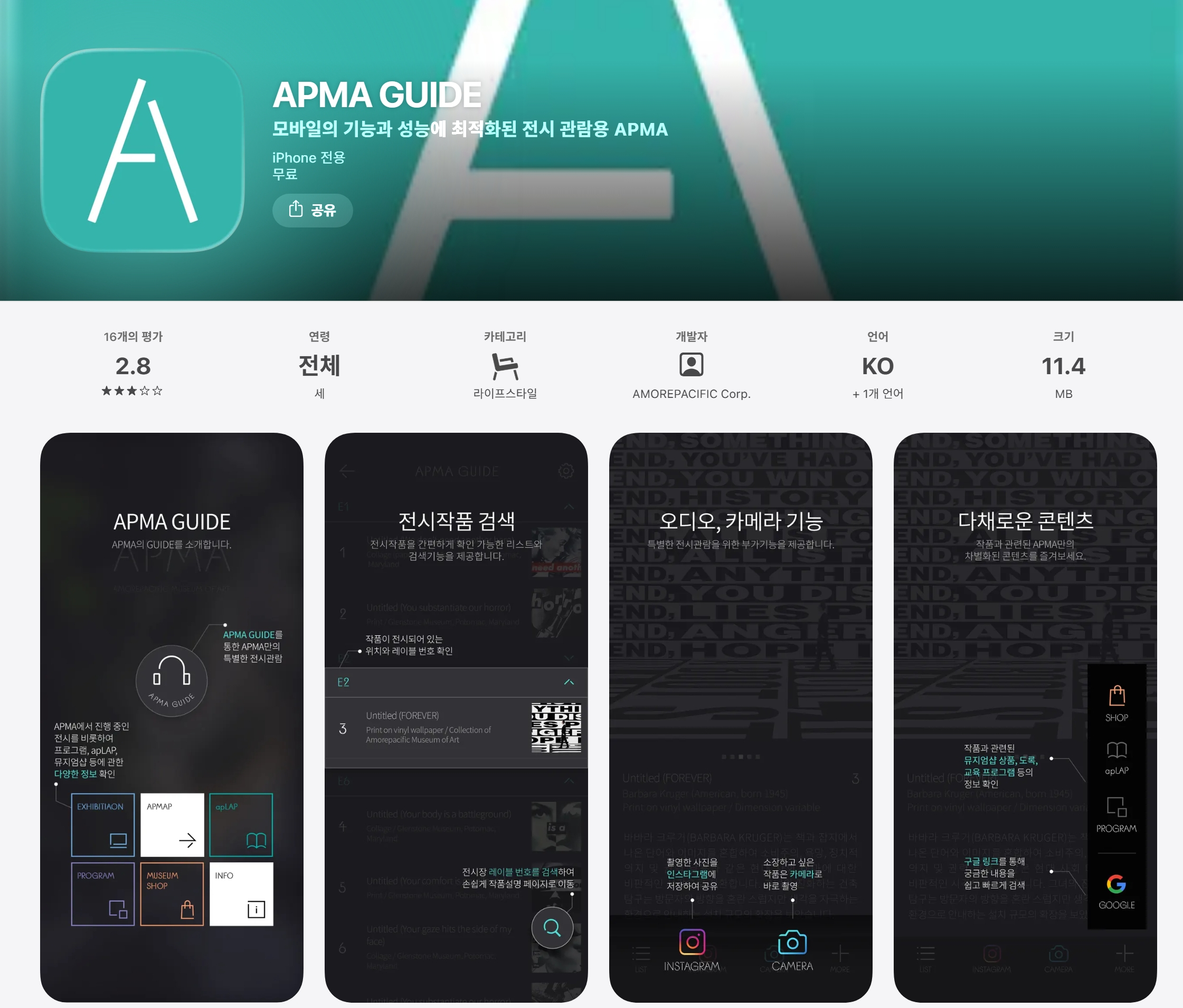 저는 보통 전시장으로 가능 길에 오디오가이드를 들으면서 가곤 하는데, 아쉽게도 아모레퍼시픽 미술관 오디오 가이드는 전시장 와이파이 환경에서만 동작합니다.