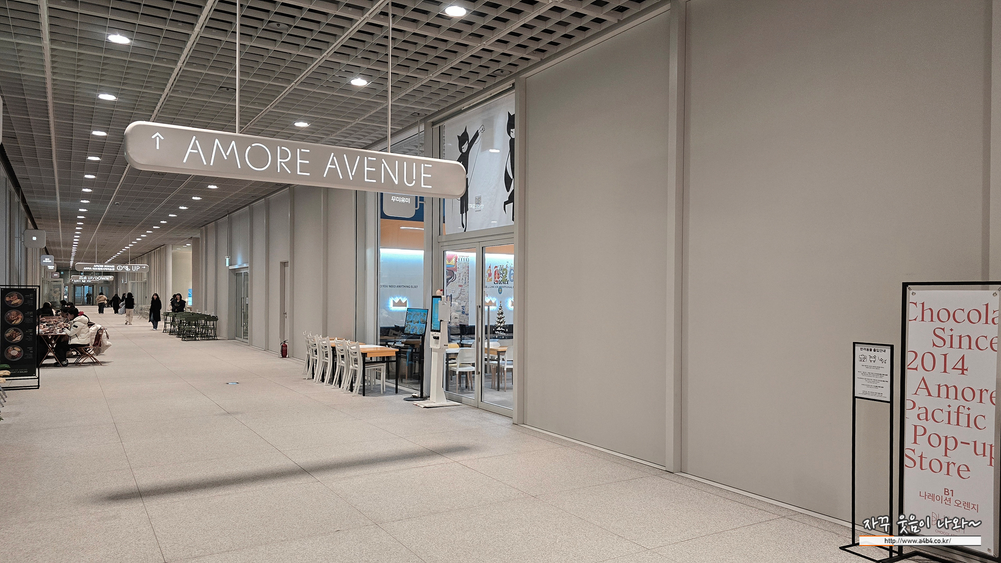 쭈욱 들어오시면 아모레 에비뉴엘로 들어오시게 됩니다. 직진하셔 1층으로 올라가시면 됩니다.