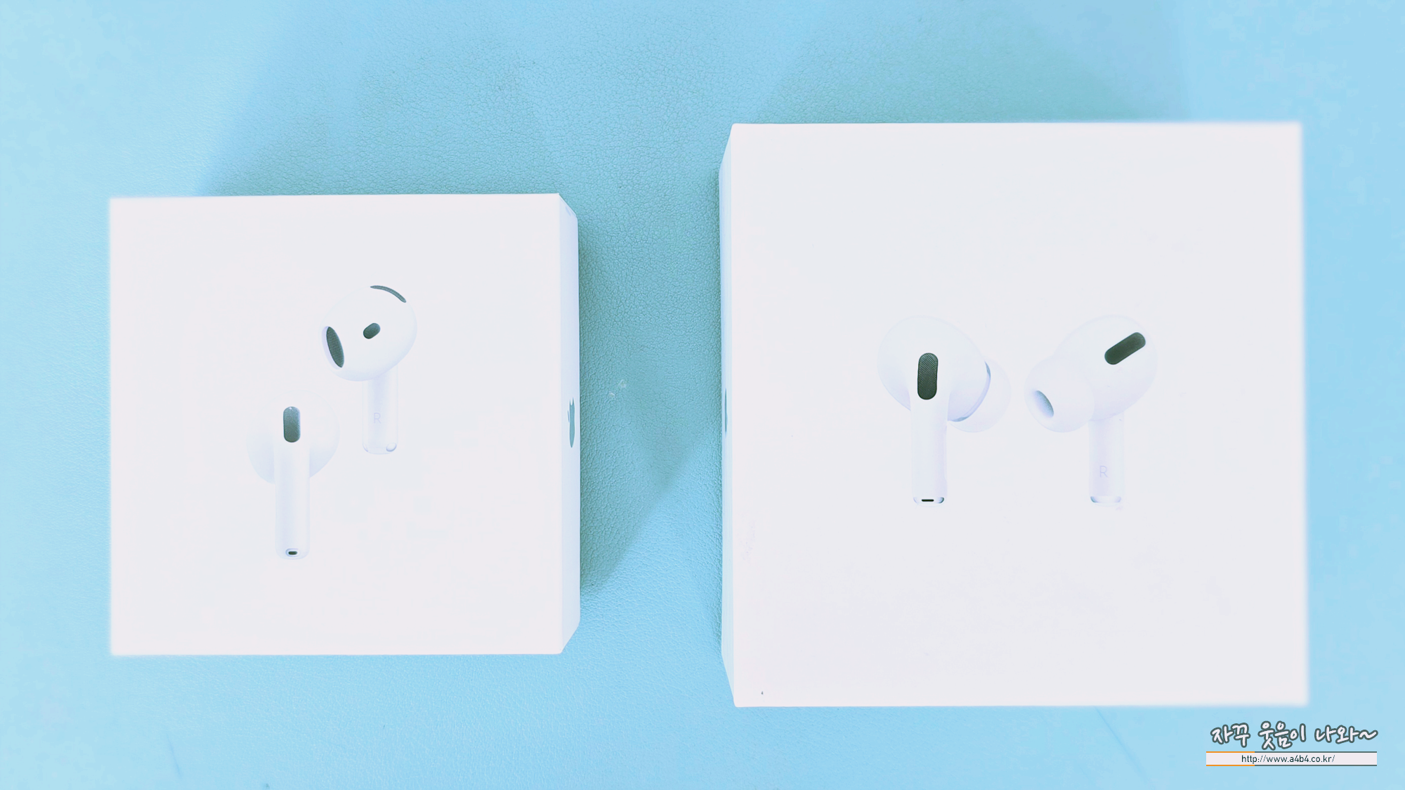 에에팟 4 노캔과 에어팟 프로 외형비교입니다. 에어팟 프로 3와 프로1과 사이즈는 다르지만 대략적인 비교는 가능합니다.
