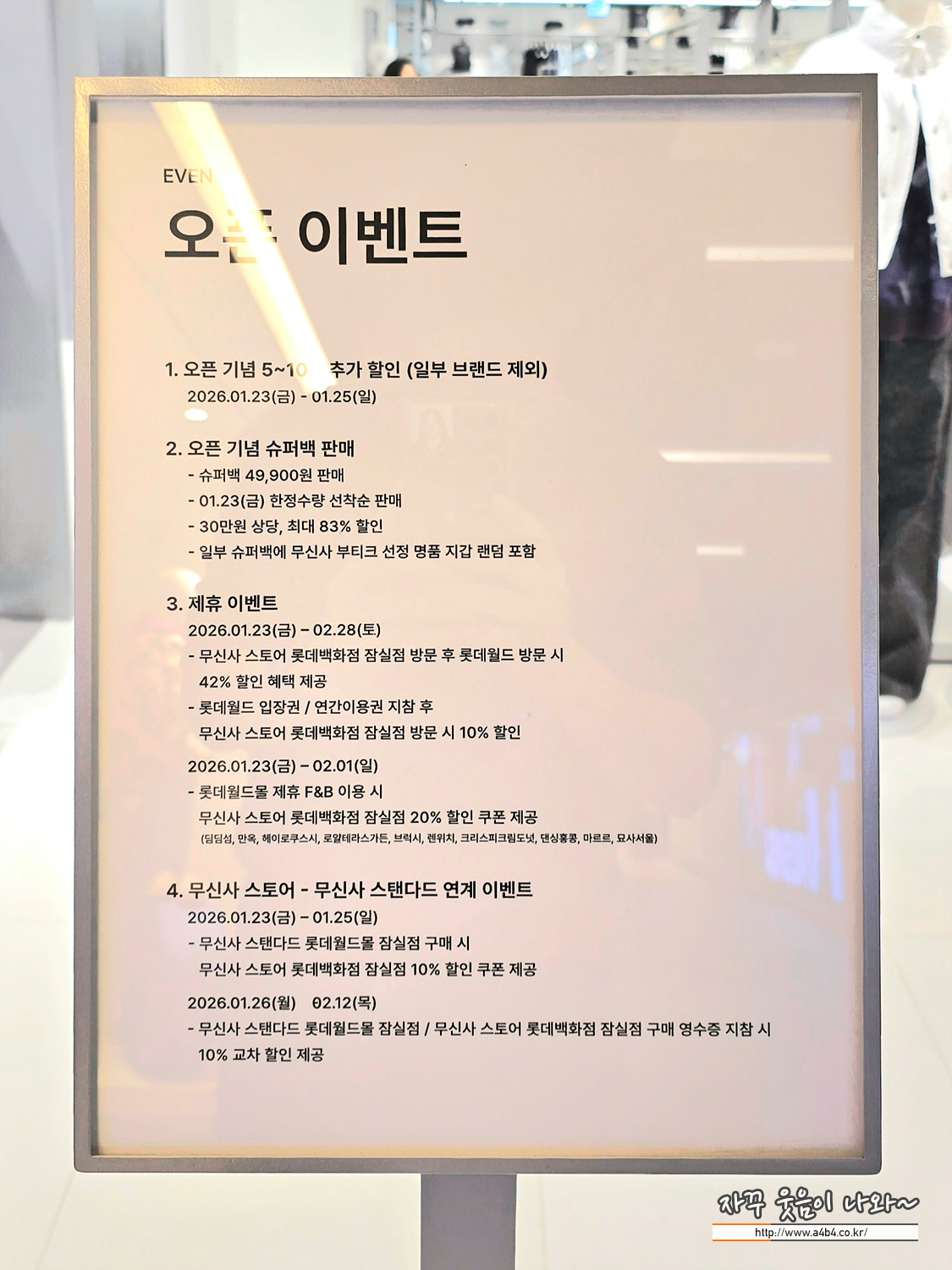 1월 23일 잠실 롯데백화점 키네틱스토어에 새로 오픈한 무신사스토어 롯데백화점 잠실점 방문후기입니다. 오픈 기념으로 다양한 이벤트와 할인 프로모션이 진행되고 있으니 꼭 확인하고 방문하세요. 모르면 놓쳐요.