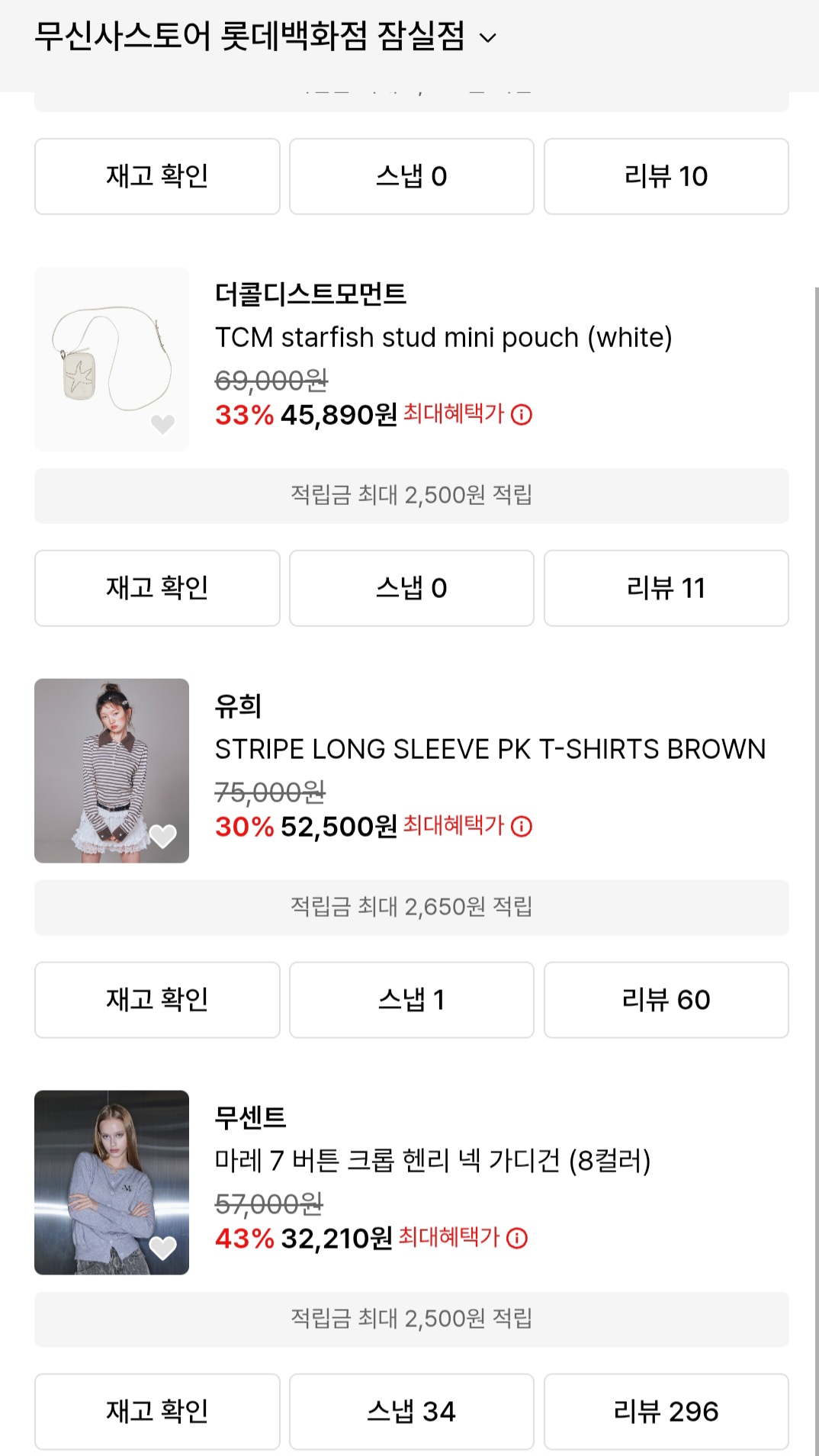 아까 롯데백화점 잠실점 지하에서 받은 무신사 스토어 롯데백화점잠실점 할인쿠폰이 중복적용 됩니다.