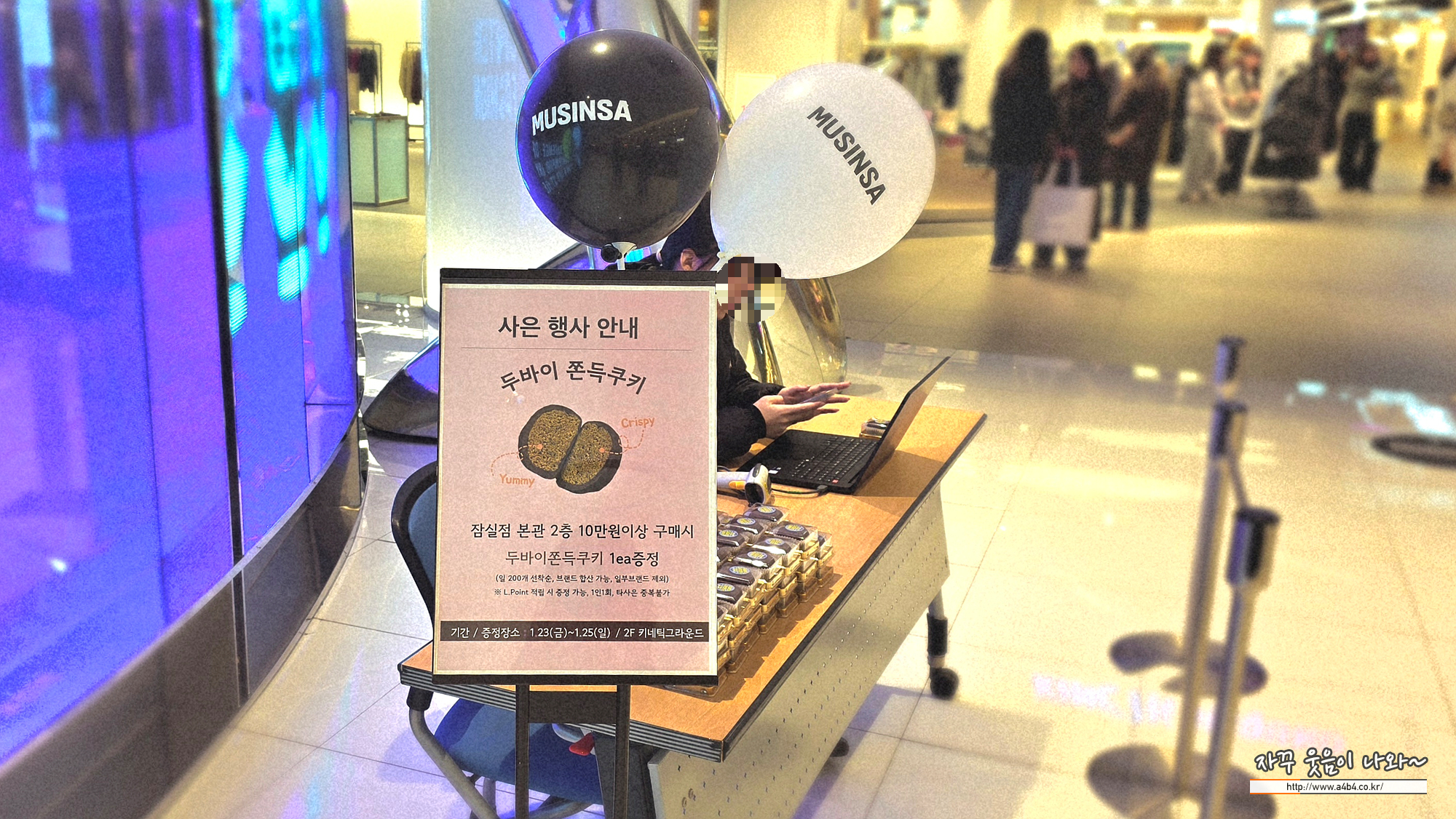 잠실 무신사스토어가 있는 잠실 롯데백화점 2층 매장에서 100,000원 이상 제품을 구매하면 선착순으로 두바이쫀득쿠키를 받을 수 있네요. 하루 2백개 선착순이어서 마음이 급해 지네요.