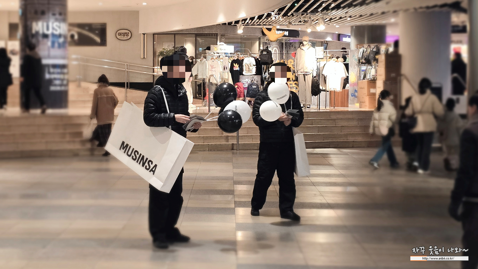 바로 무신사 대형 가방을 가지고 있는 이분들을 찾으시면 풍선과 함께 무신사 할인쿠폰을 주시네요.