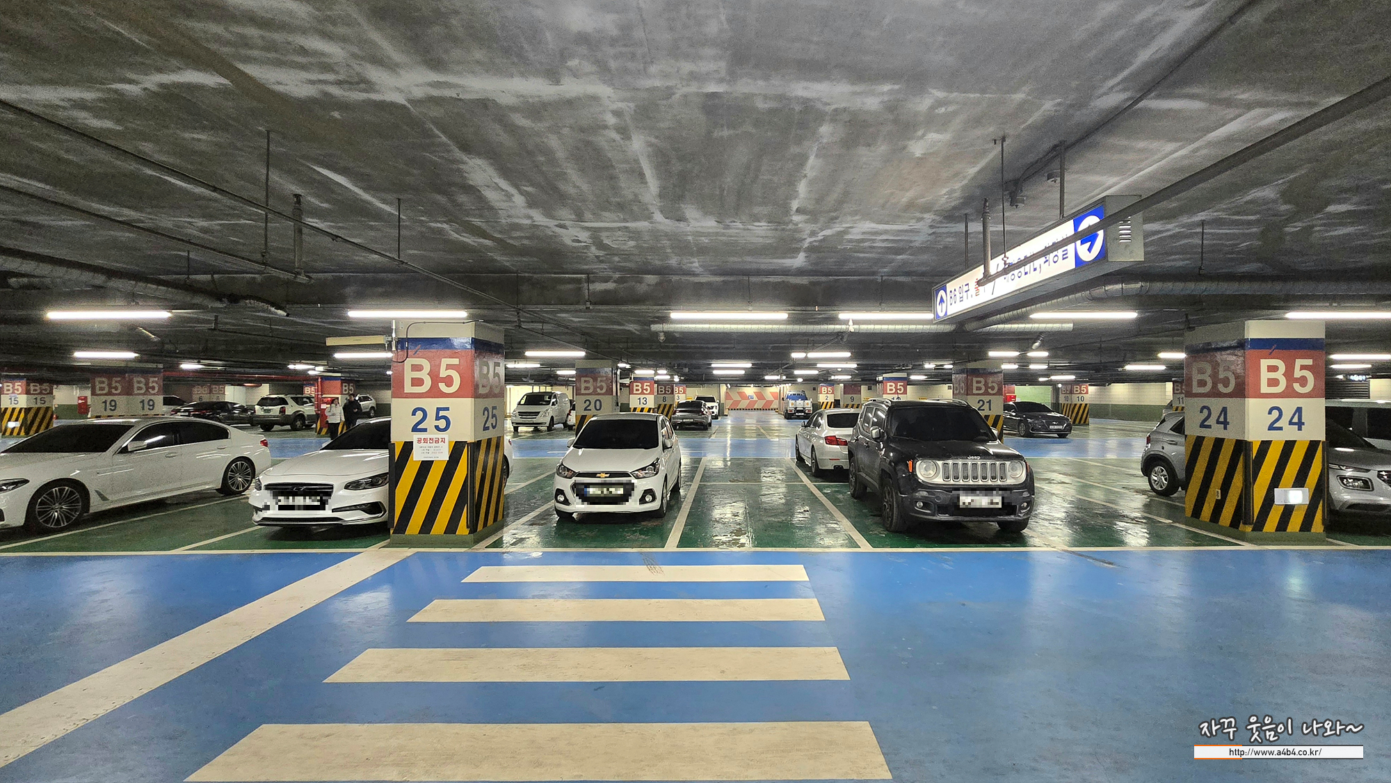 주차장 공간도 여유있지만 차간 간격은 다소 아쉽습니다. 주차장 관리는 그렇게 좋다고 보기는 어렵고요. 이 넓은 공간에 주차 안내원은 없습니다.