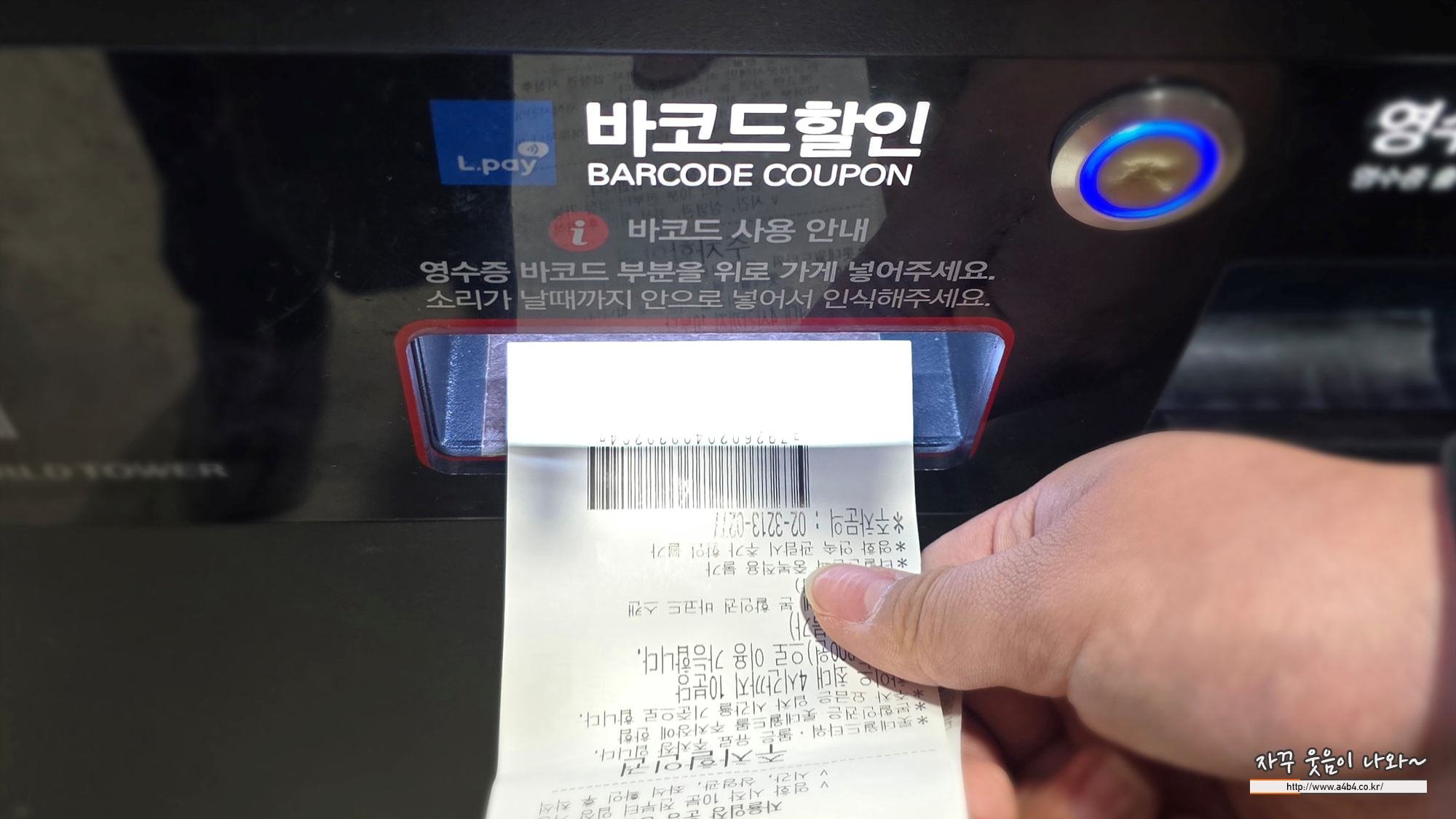 주차요금 정산기에서 차량번호 입력하고 기기 하단 바코드할인에 티켓 하단의 바코드 인식하면 주차요금 할인 가능합니다.